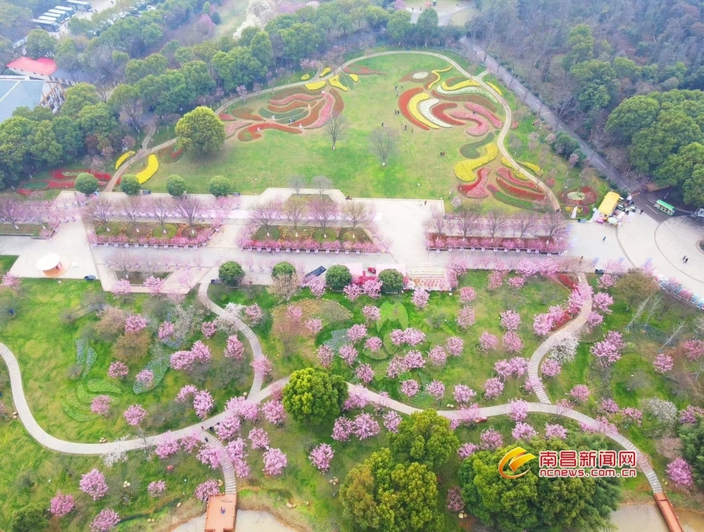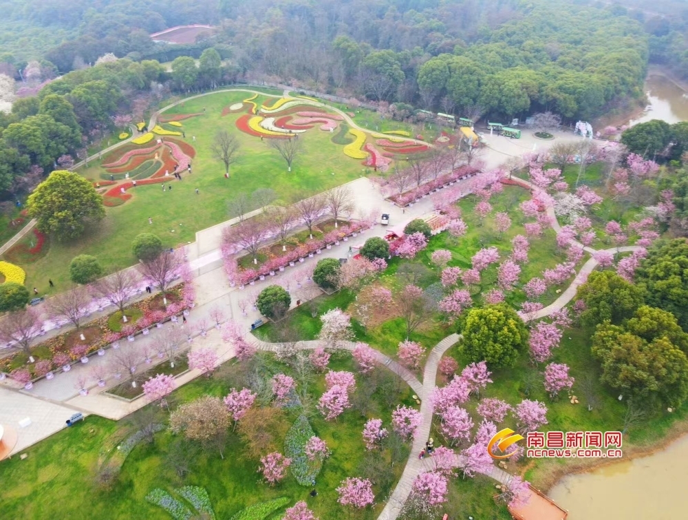 南昌新闻网讯 连日来,随着我市气温逐步回升,南昌县凤凰沟内成片的樱花伴着郁金香竞相绽放,从空中俯瞰,彩色的花卉图案似灵动的彩带,肆意铺展,洋溢着生机与活力,形成我市春日一道美丽的风景线。(虞亮亮 洪观新闻记者 成奔 文/图)