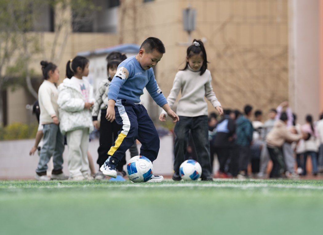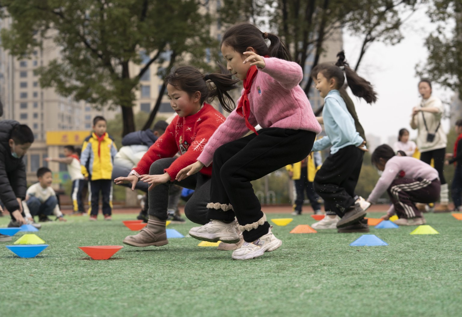 3月11日,市逸夫小学的学生在每天一节的体育课上参与足球、互动游戏等运动。新学期以来,我市各学校通过落实“体育课+大课间”等增强学生体质的措施,结合球类、体能、游戏等多彩运动项目助力学生健康成长。本报记者 赵春亮摄