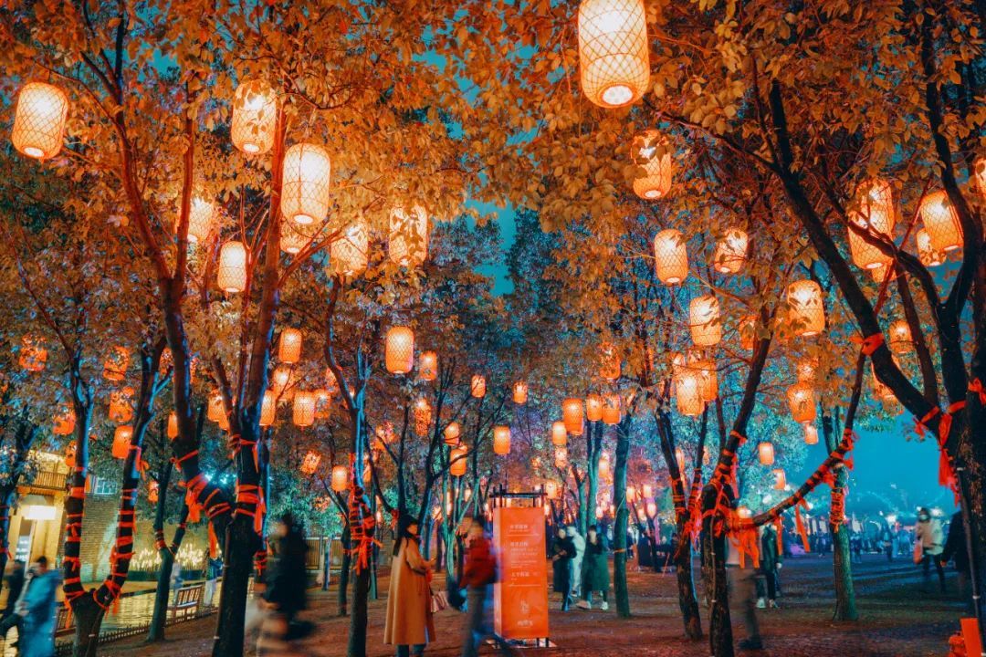 天色渐暗,树上的红灯笼成片亮起,远处的龙珠阁被一条条灯带勾勒出轮廓,在夜晚显得格外庄严肃穆,随着咚咚的鼓点声起,陶阳庙会的重头戏——开禁迎神要来了。