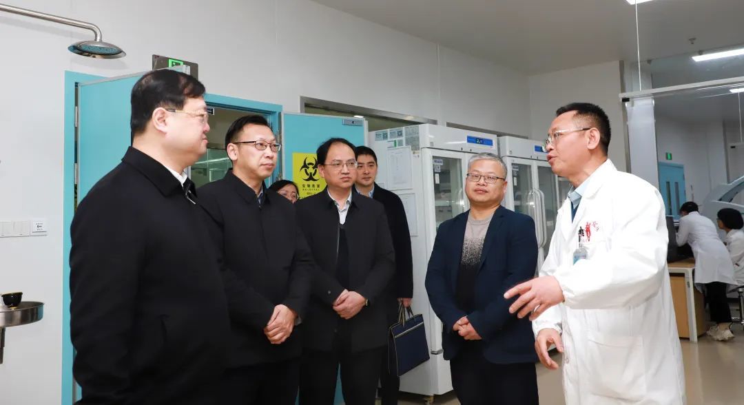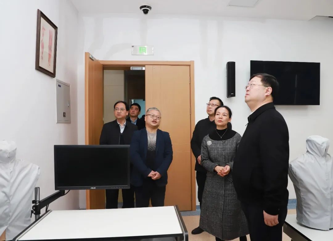 殷剑一行先后调研了医院智慧后勤调度中心、医学检验科、临床技能培训中心等地,了解相关工作情况。
