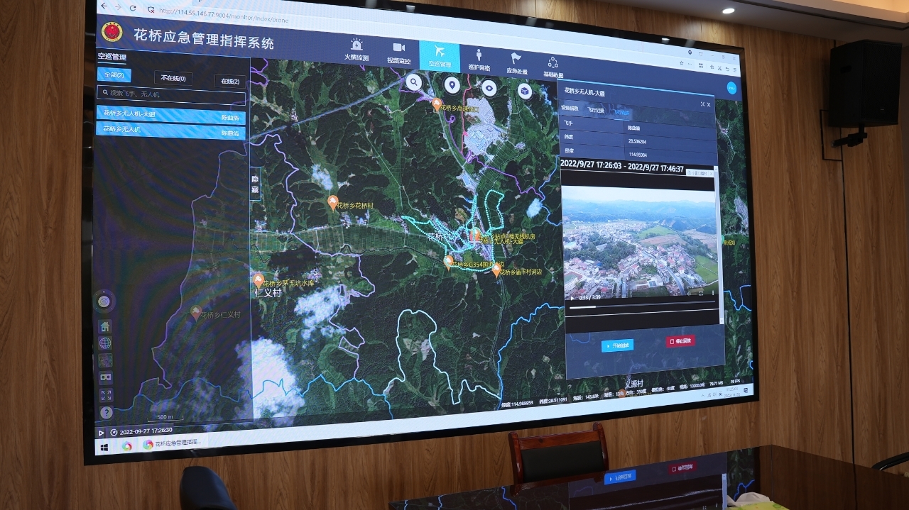 “嘀——”2024年12月11时,花桥乡3S云台指挥系统高空摄像头捕捉到该乡永新广场对面田埂的一处隐蔽烟点。花桥乡防火办干事漆显华操作智慧平台,10分钟内便调度护林员到场处置。
