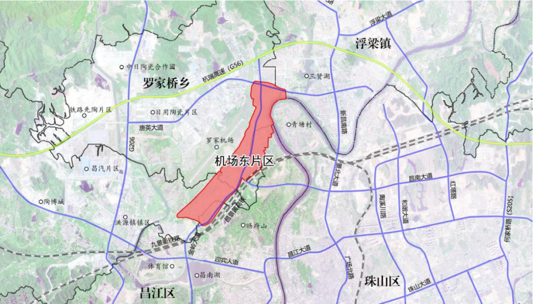 本次规划范围为东至昌江、金岭大道;南至G206(旧);西邻罗家机场;北至唐英大道、朝阳西大道。规划范围总面积约301.78公顷。