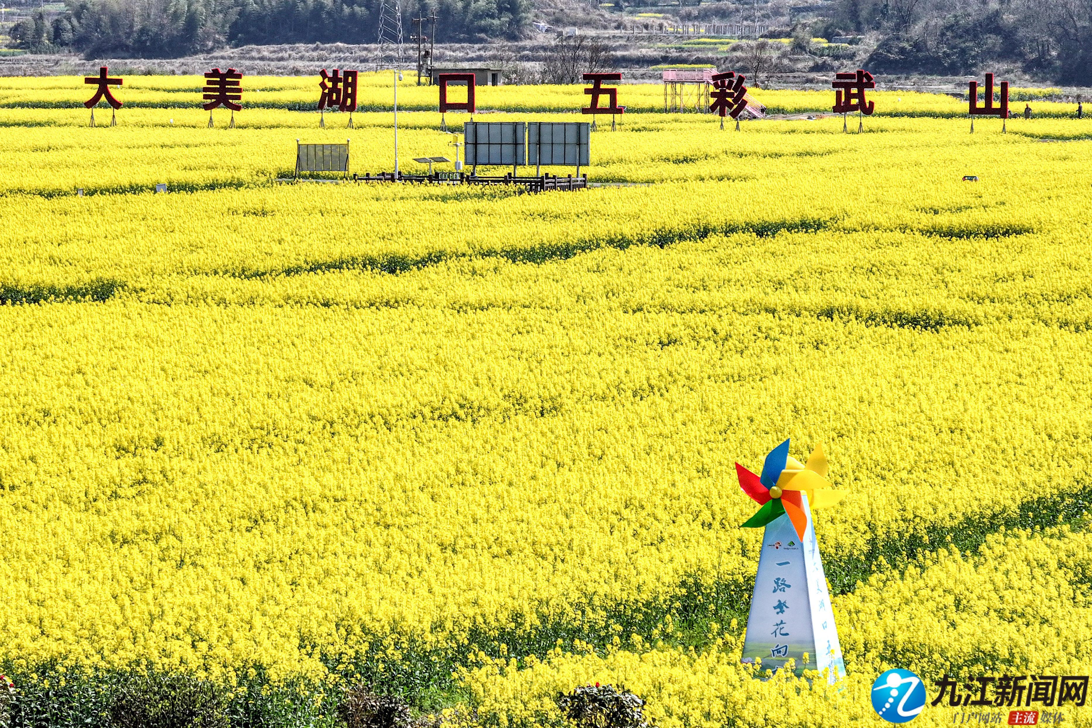 3月17日,位于湖口县武山镇,万亩油菜花海竞相绽放,已进入最佳观赏季。