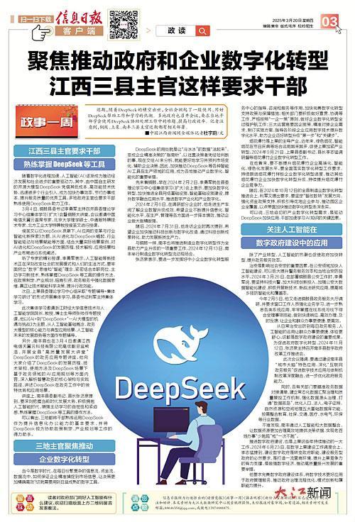 江西三县主官要求干部熟练掌握DeepSeek等工具