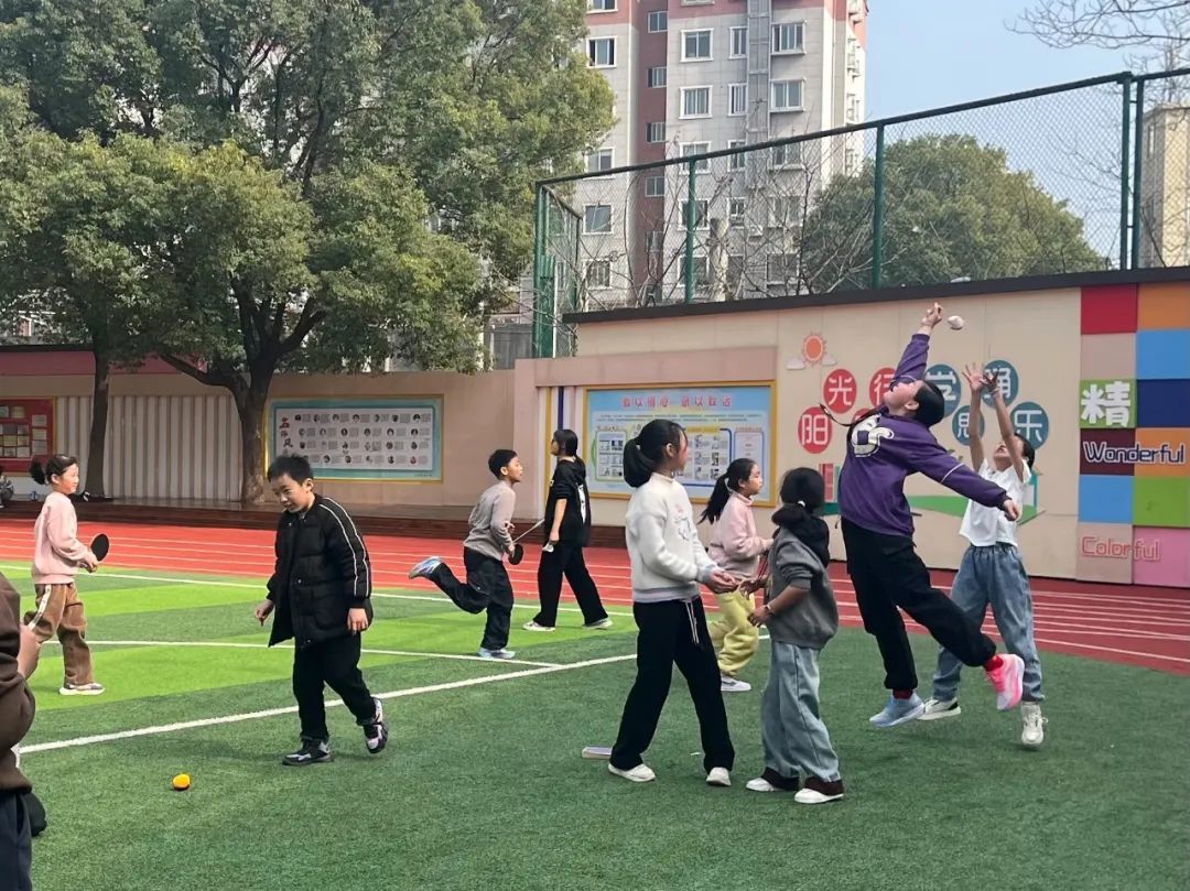 长虹小学体育老师邹毅介绍,该校以“健康、快乐、成长”为核心理念,结合学生年龄特点和需求,分层分类设计活动。针对低年级学生,以趣味游戏为主,如“萝卜蹲”“跳房子”“切土豆”“石头剪刀布”“地面飞行棋”“丢沙包”等,激发童趣;中高年级则融入体能锻炼项目,如跳长绳、飞盘、立定跳远、乒乓球、篮球等,增强体质。此外,该校还创新打造了“地面趣味游戏图”和“学生自创游戏区”,例如投壶,既传承传统文化,又锻炼学生的专注力。