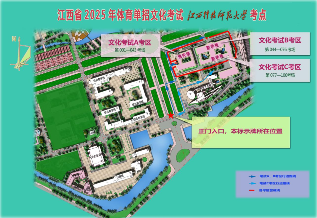 考生由南大门(学府大道)进入考点。