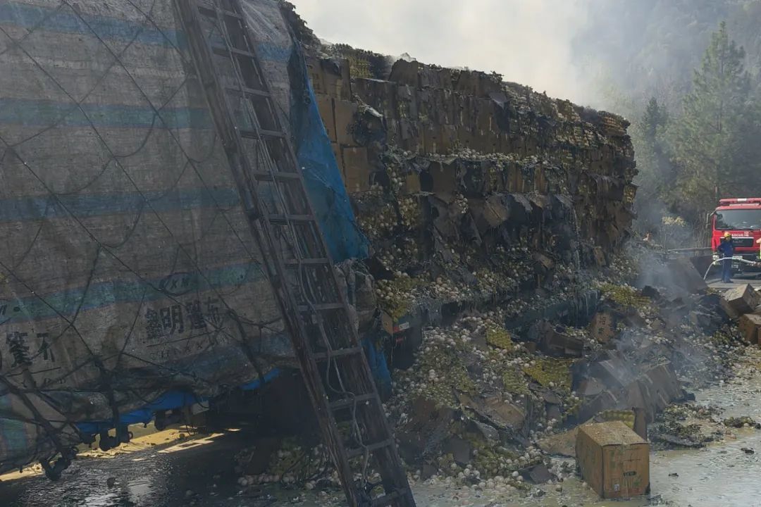 货车的车尾位置正在燃烧