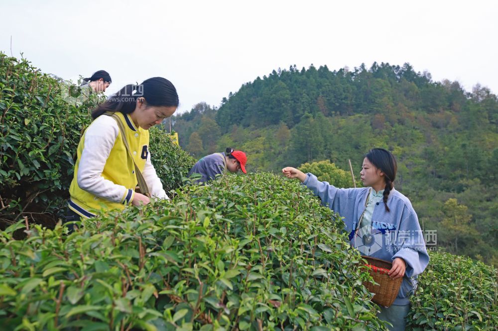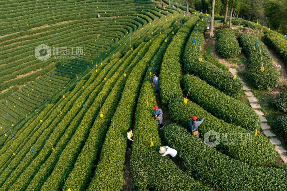 2025年3月24日,在江西省吉安市吉水县螺田镇老山村盘岭生态有机茶厂的茶园里,茶农正在赶采“明前茶”鲜叶,茶园里一派繁忙景象。