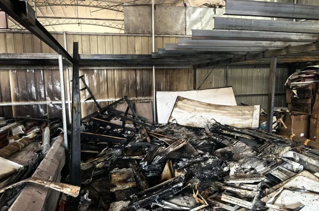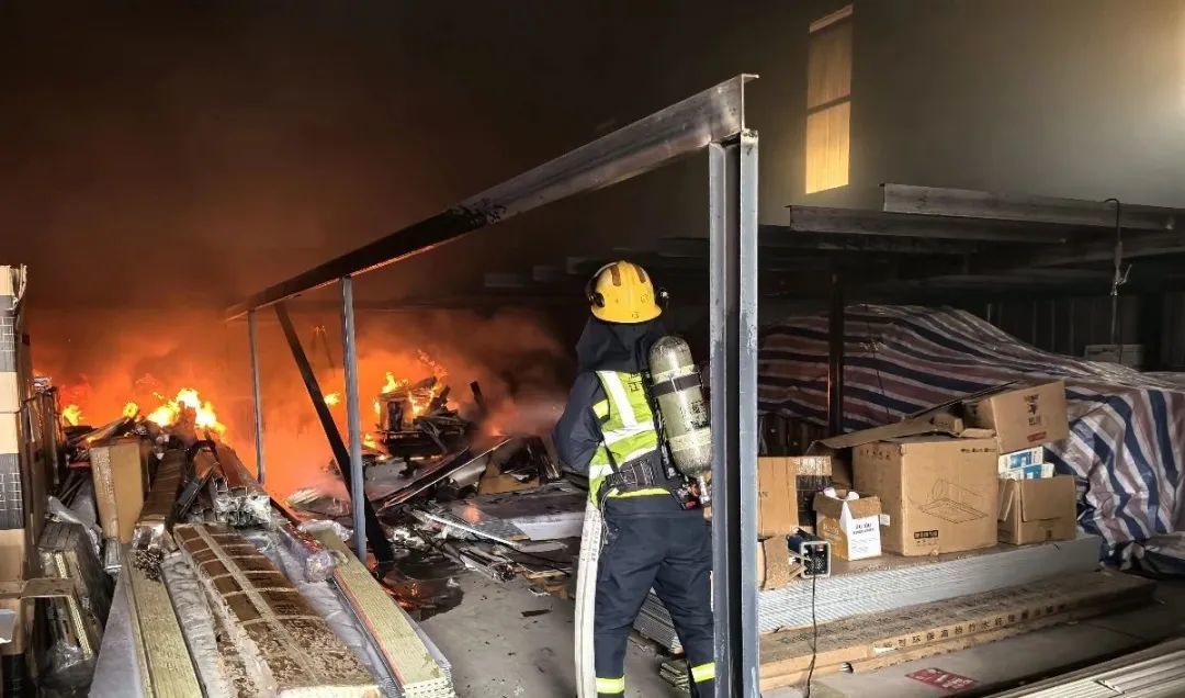 此次火灾燃烧物质为蜂窝铝板及外包装