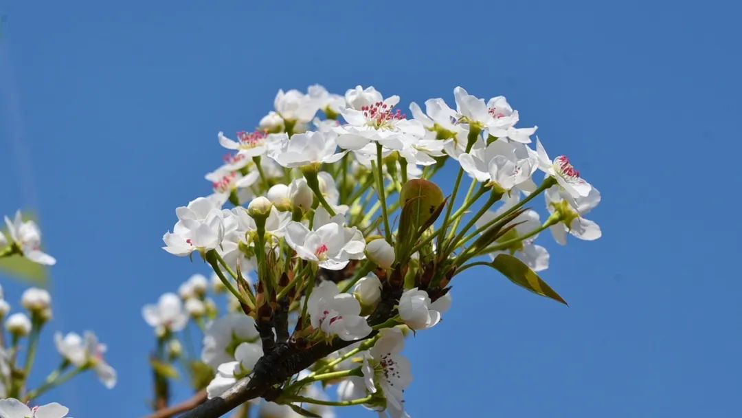 走进塔桥园艺场,仿佛置身于一个如梦如幻的世界。梨园中,梨花层层叠叠,似云似雾。每一朵梨花都由五片洁白的花瓣组成,在阳光的照耀下,闪烁着柔和的光芒。微风吹过,花枝摇曳,花瓣如雪片般纷纷飘落,仿佛下起了一场浪漫的“花雨”。
