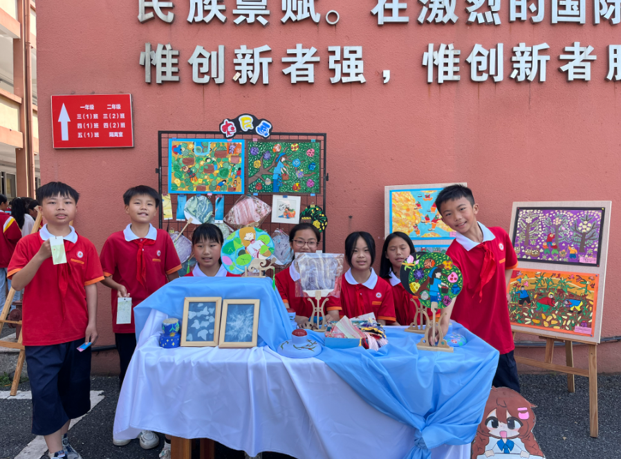 芦溪县源南学校的学生们在展示自己的农民画作品。