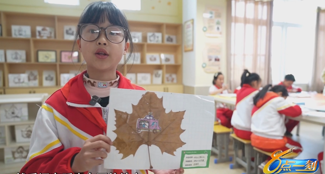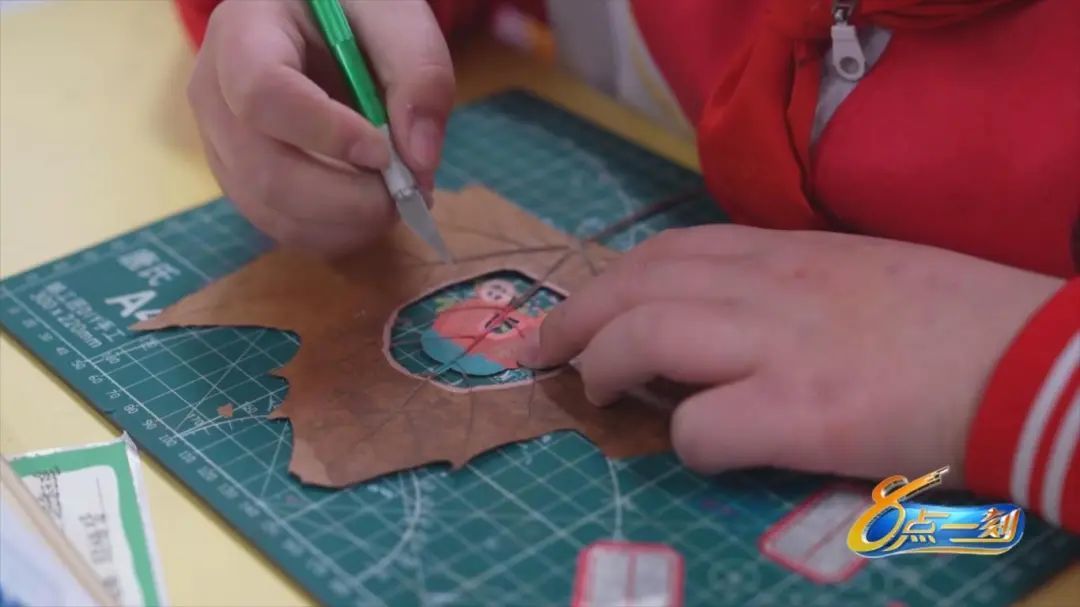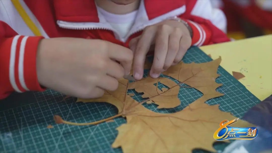 芦溪镇第二中心学校教师 胡梅琴:我们校门口有两排梧桐树,每到秋天,叶子就会飘落在地上,孩子们捡回来会在上面画一些画,后来画着画着,我们就用刀来刻,发现刻得很好看,所以就开设了叶雕课程。
