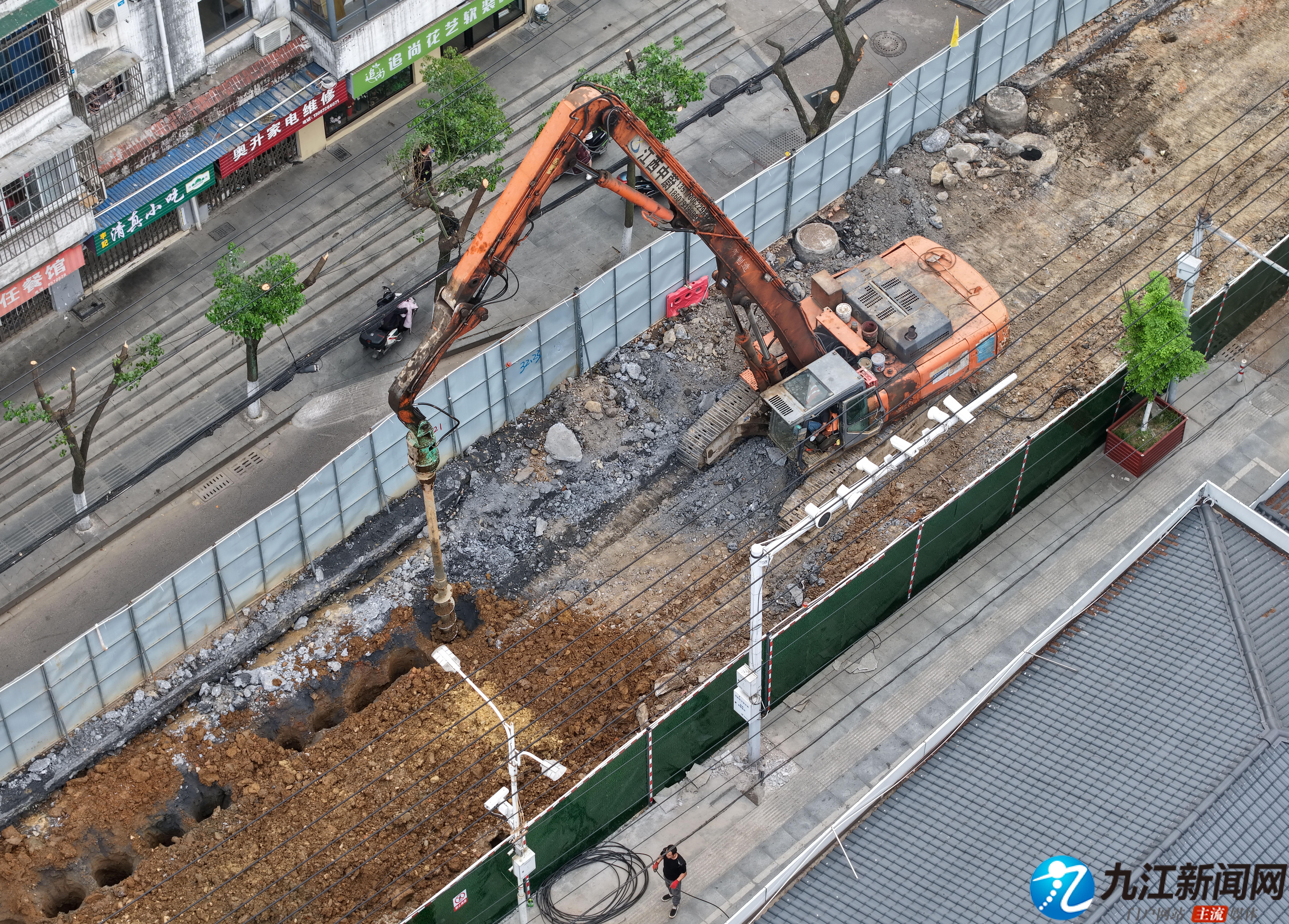 4月10日,南湖支路排水管网改造工程现场机械作业有序。