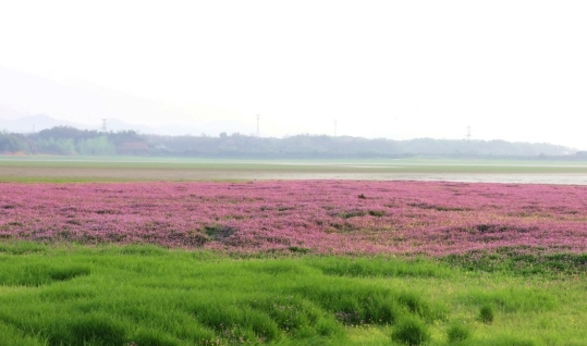 彭泽县芙蓉农场芳湖滩大片紫云英绽放,美不胜收(彭琴 摄)