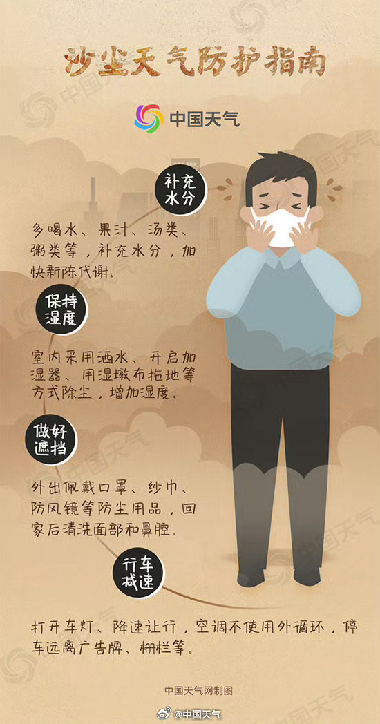面对浮尘天气,“现场鸽”提醒观众朋友,要做好防风防沙准备,及时关闭门窗。儿童、老人和心脏病、肺病患者要尽量留在室内,停止户外活动。外出时记得戴口罩、纱巾等防尘用品,以免沙尘对眼镜和呼吸道造成损伤。