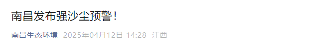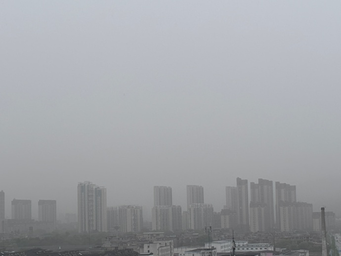 4月12日,景德镇受强冷空气大风影响,出现沙尘污染,公众请注意防护。