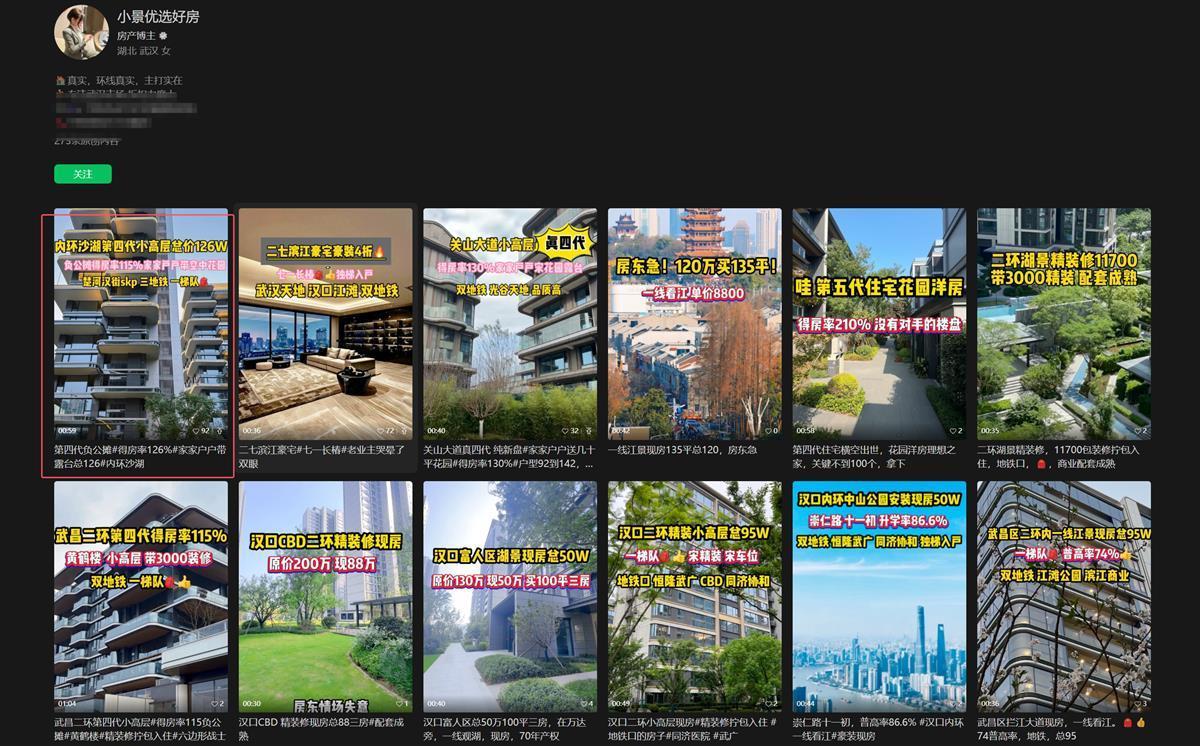 极目新闻记者查看“小景优选好房”账号,发现其所推荐的各个楼盘文案雷同,均宣称有核心区域的核心配套资源,不仅展示的样板间房型优越,且价格足够诱人。不过,楼盘的具体位置及名称,始终是个“谜”。