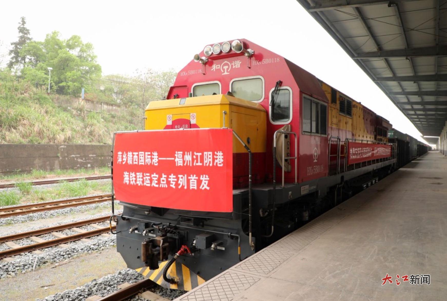 目前,管内铁海联运对接外贸班轮,已贯通赣闽两省至福州江阴港、厦门港、盐田港等12条出海大通道,联通国内26个重点城市,形成了客车化、组合制、“天天班”的铁海联运班列开行模式。