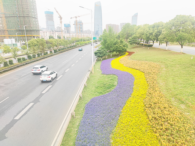 “我们充分利用路旁斜坡的地形特点,精心挑选不同习性的植物,致力于打造多层次的景观。(使用)月季、油菜花、向日葵、粉黛乱子草等,通过大胆的尝试和合理的搭配,不仅丰富了景观层次,增加了城市绿量,还与周边植被相结合,形成了春夏观花、秋季观叶的独特景观,展现出良好的生态性。”南昌市园林绿化服务中心绿化养护一所的付亮说道。