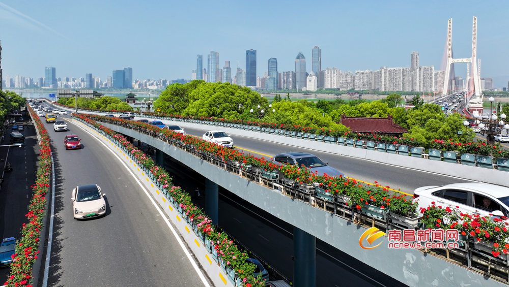 南昌新闻网讯 4月18日,在南昌八一大桥上,2万余株月季陆续绽放,娇艳欲滴,将春天的绚丽缤纷毫无保留地展现出来,为城市增加靓丽的空中花廊。