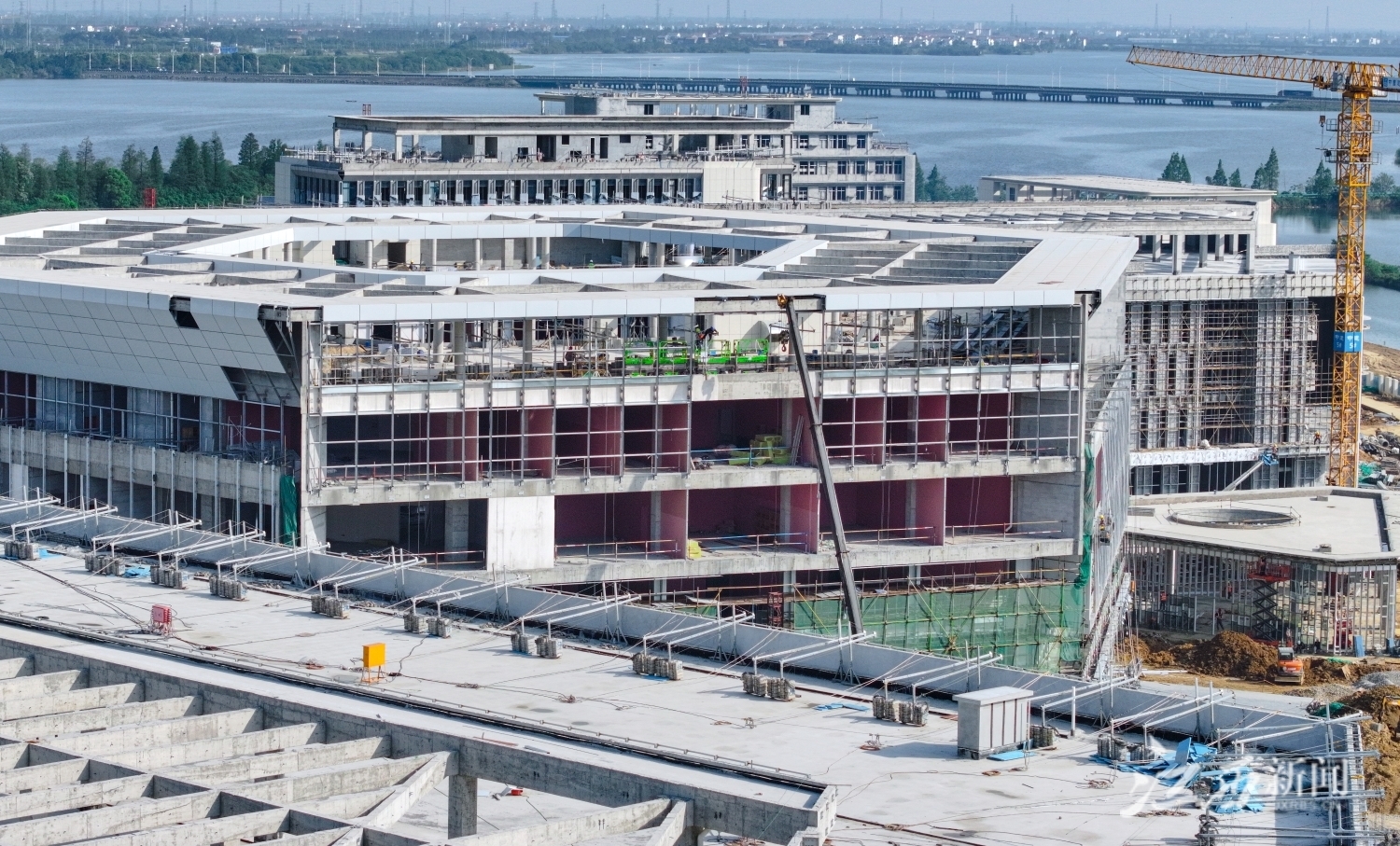 南昌瑶湖科学岛一期项目作为我省重点建设项目,目前主体结构和室内二次结构施工已全部完成,幕墙施工进度达到60%,项目整体形象逐渐清晰。