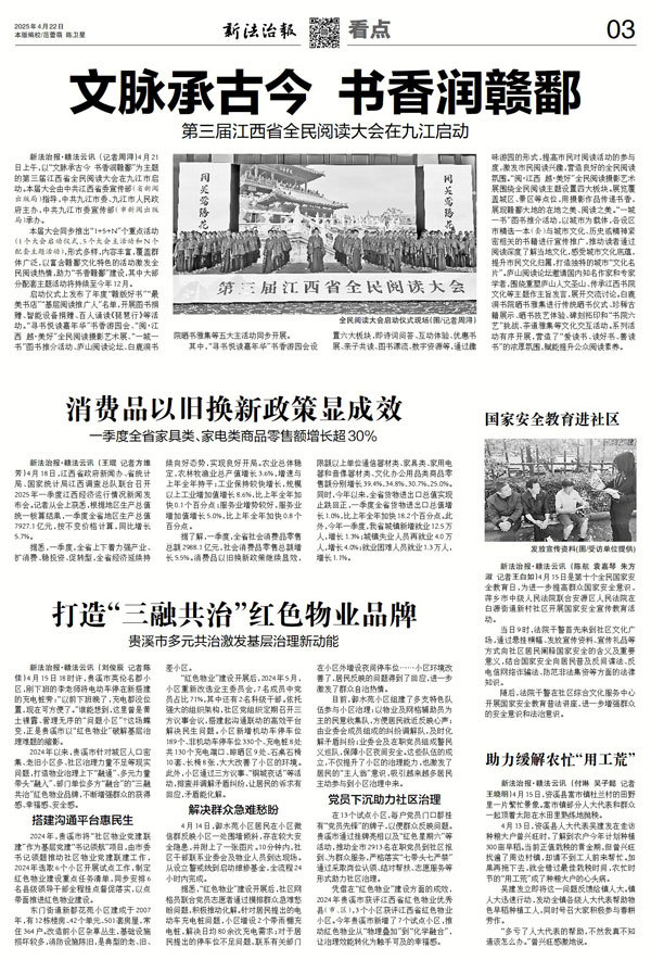 2024年以来,贵溪市针对城区人口密集、老旧小区多、社区治理力量不足等现实问题,打造物业治理上下“融通”、多元力量带头“融入”、部门单位多方“融合”的“三融共治”红色物业品牌,不断增强群众的获得感、幸福感、安全感。