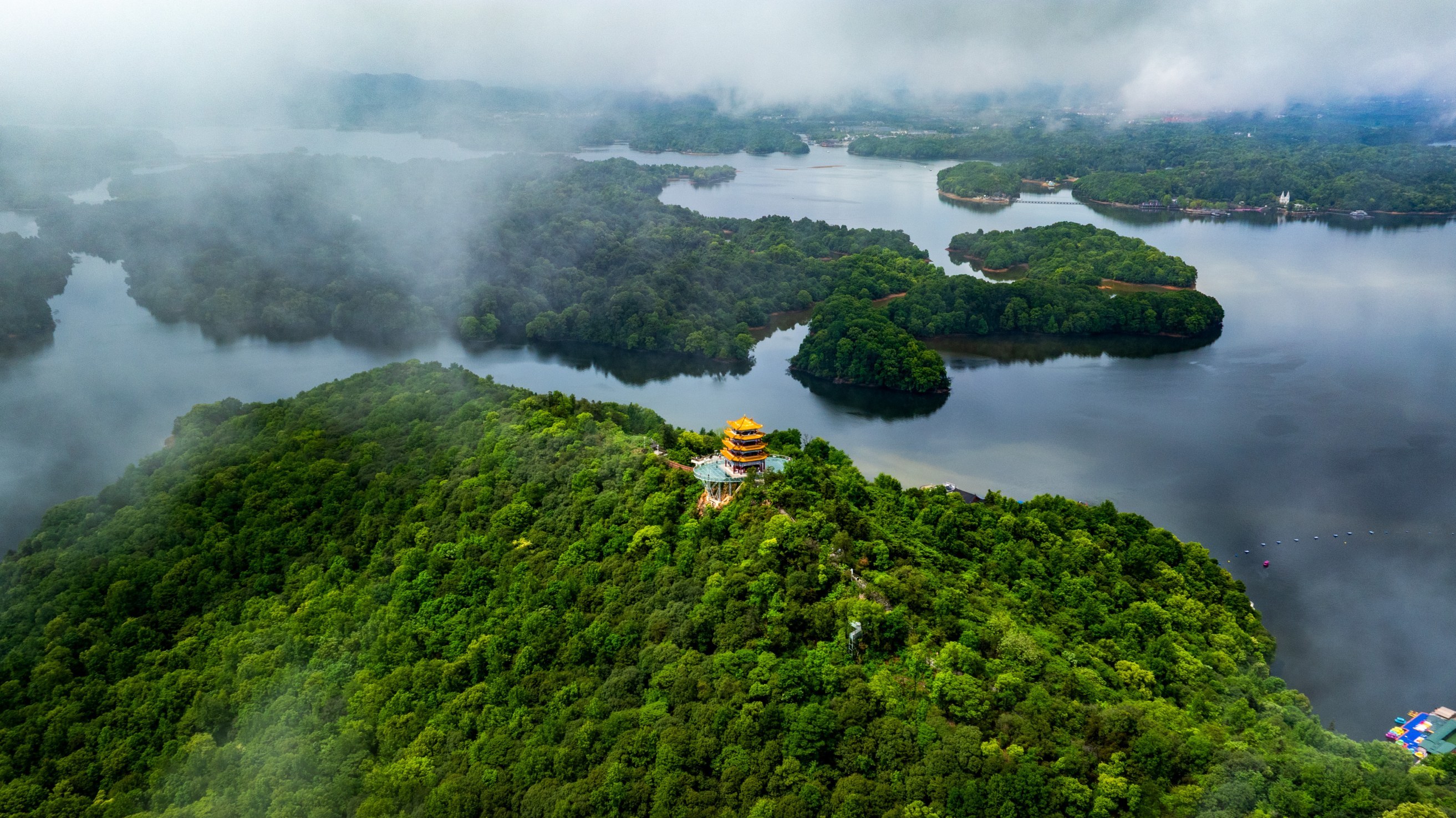 4月19日,雨后的仙女湖,水秀山明,云雾缭绕,变幻多姿,美如画卷。本报记者 谭建荣摄