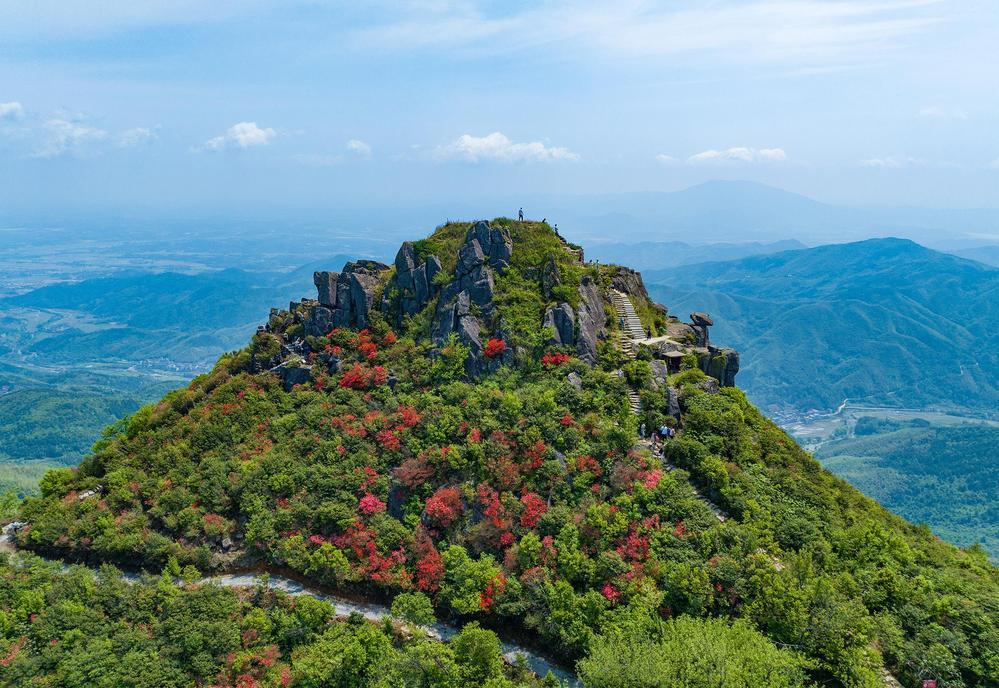 4月21日,在丰城市荷湖乡升华山,万余亩野生映山红竞相绽放,吸引了不少游客前来踏青赏花。(王堃 摄)