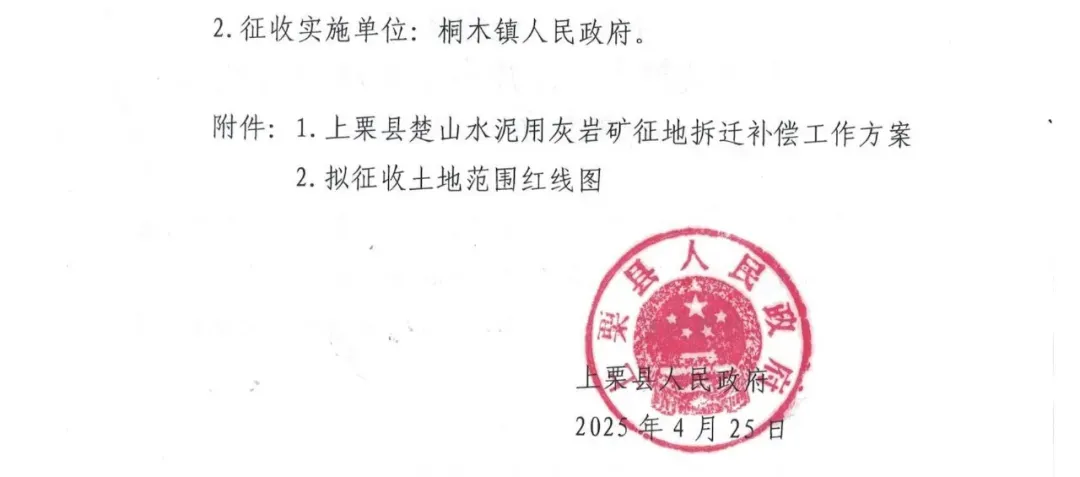 上栗县楚山水泥用灰岩矿征地拆迁补偿工作方案