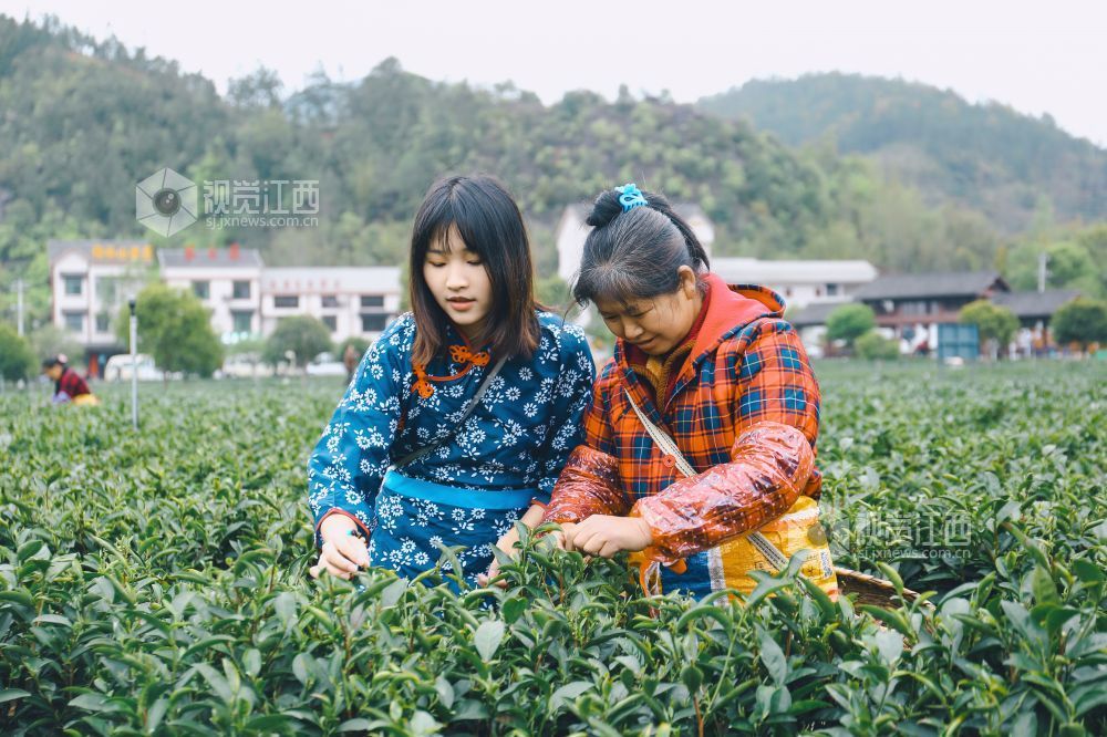 2025年3月28日,在遂川县汤湖镇茶旅品味小镇,明前茶芽缀满枝头,游客们化身茶园画师,指尖在叶脉间勾勒春色,竹篓盛满云雾茶香。