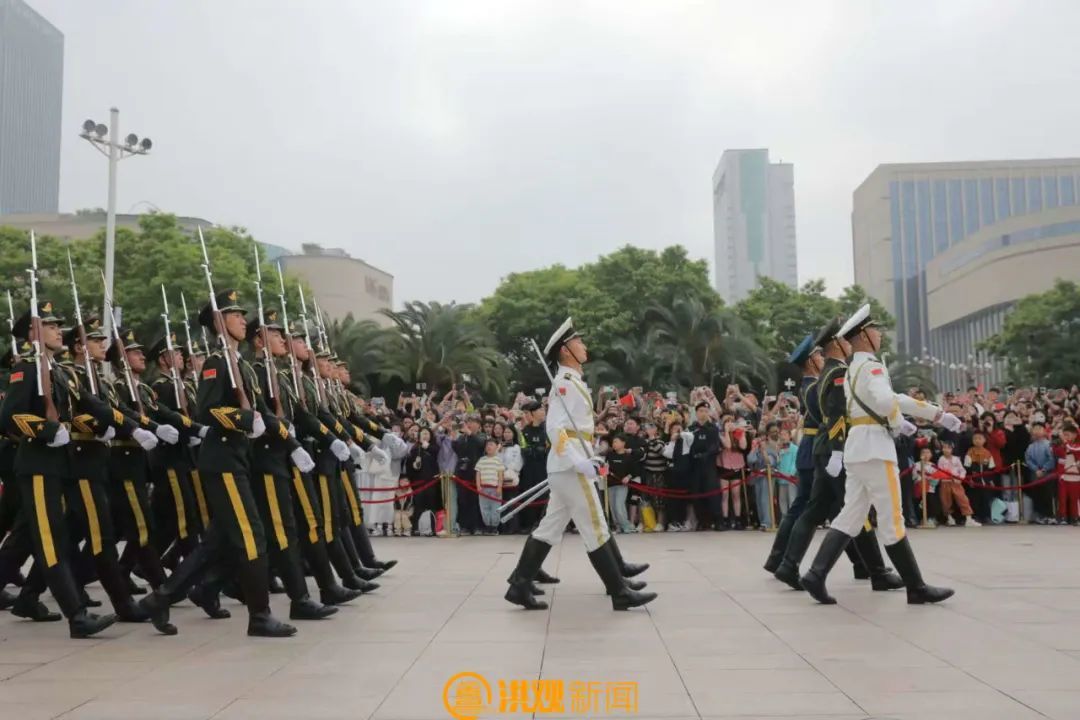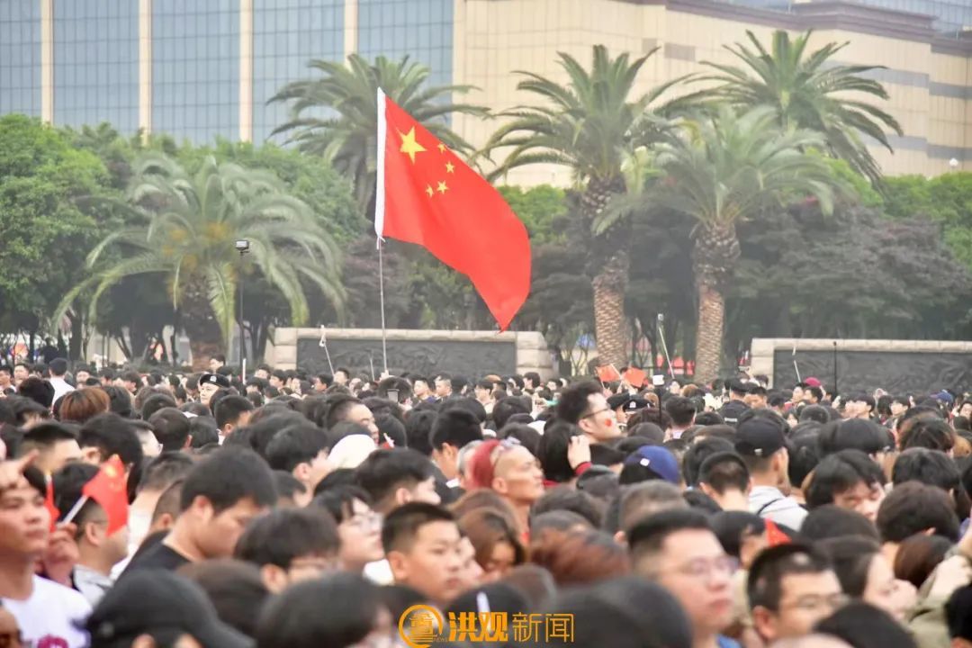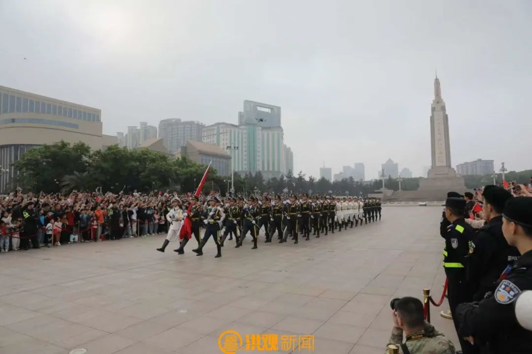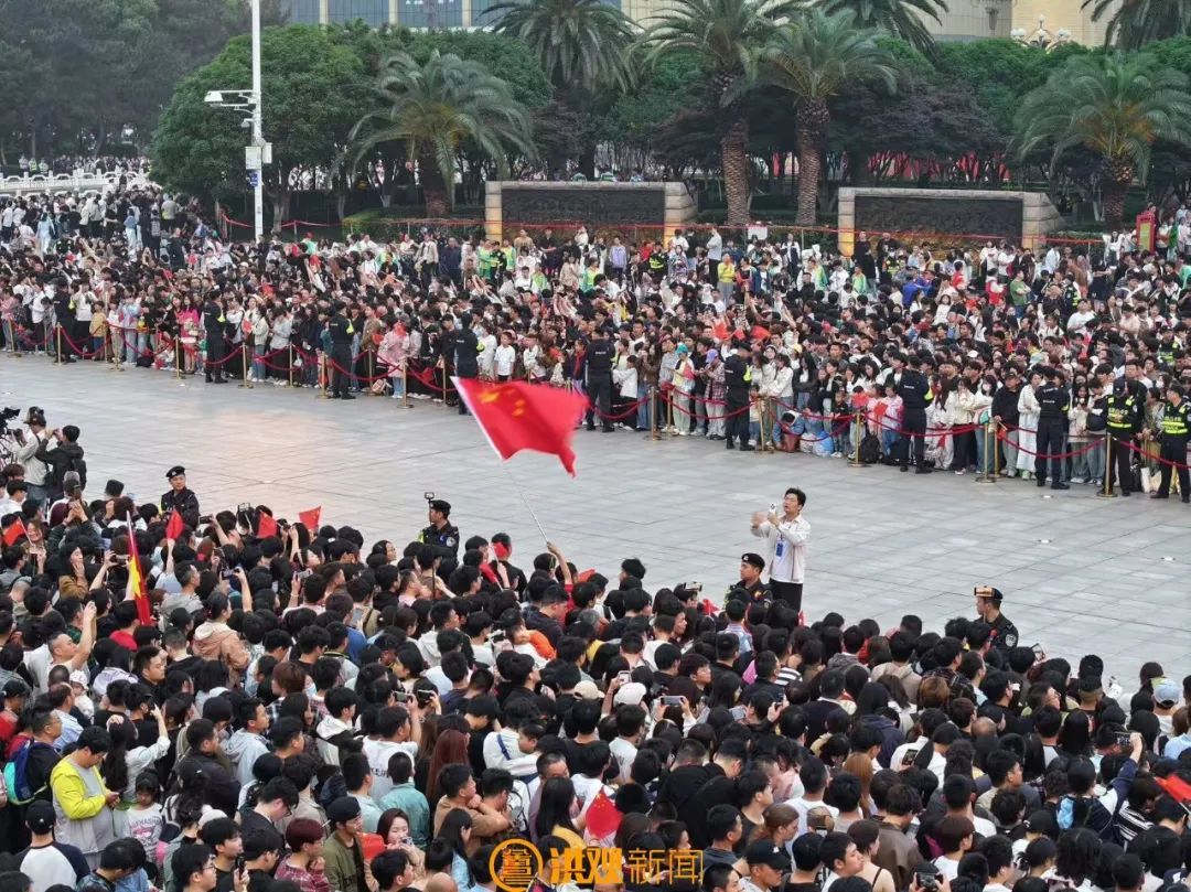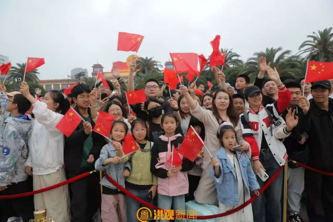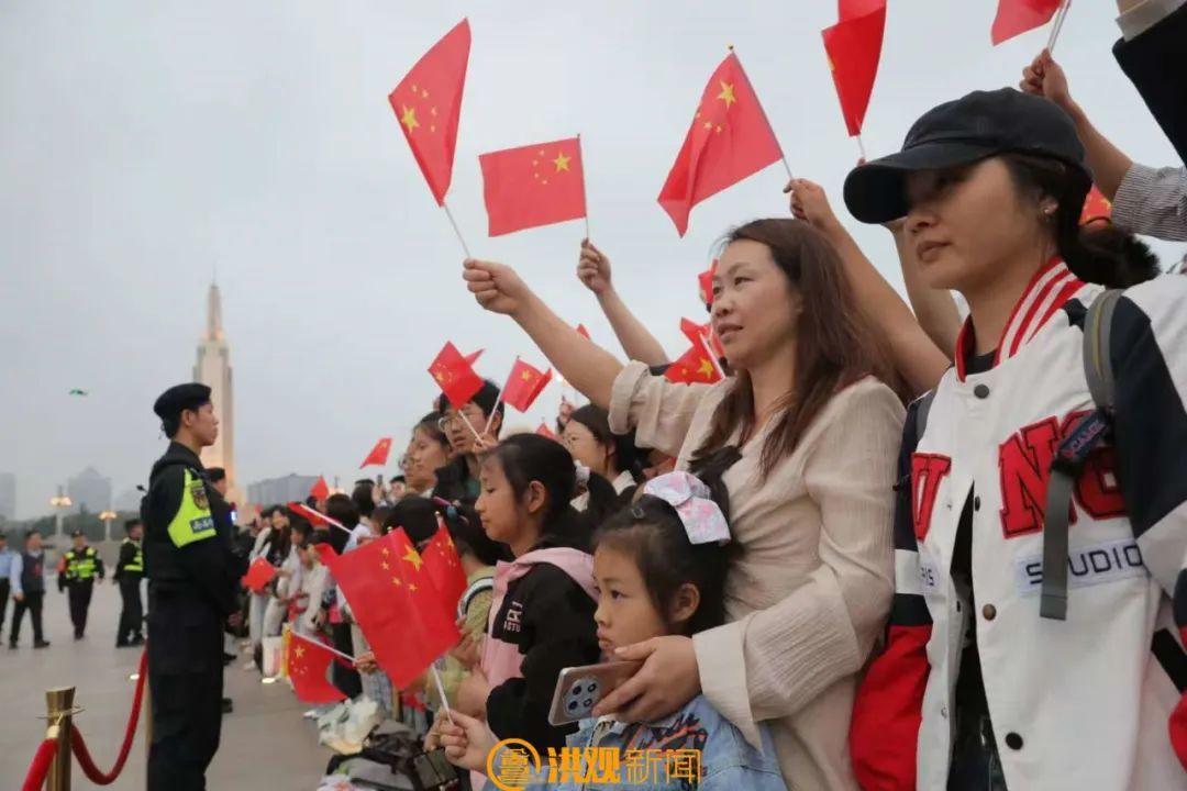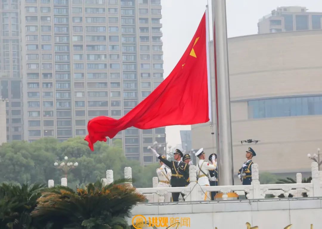 在激昂的歌声中, 五星红旗 升至旗杆最高点