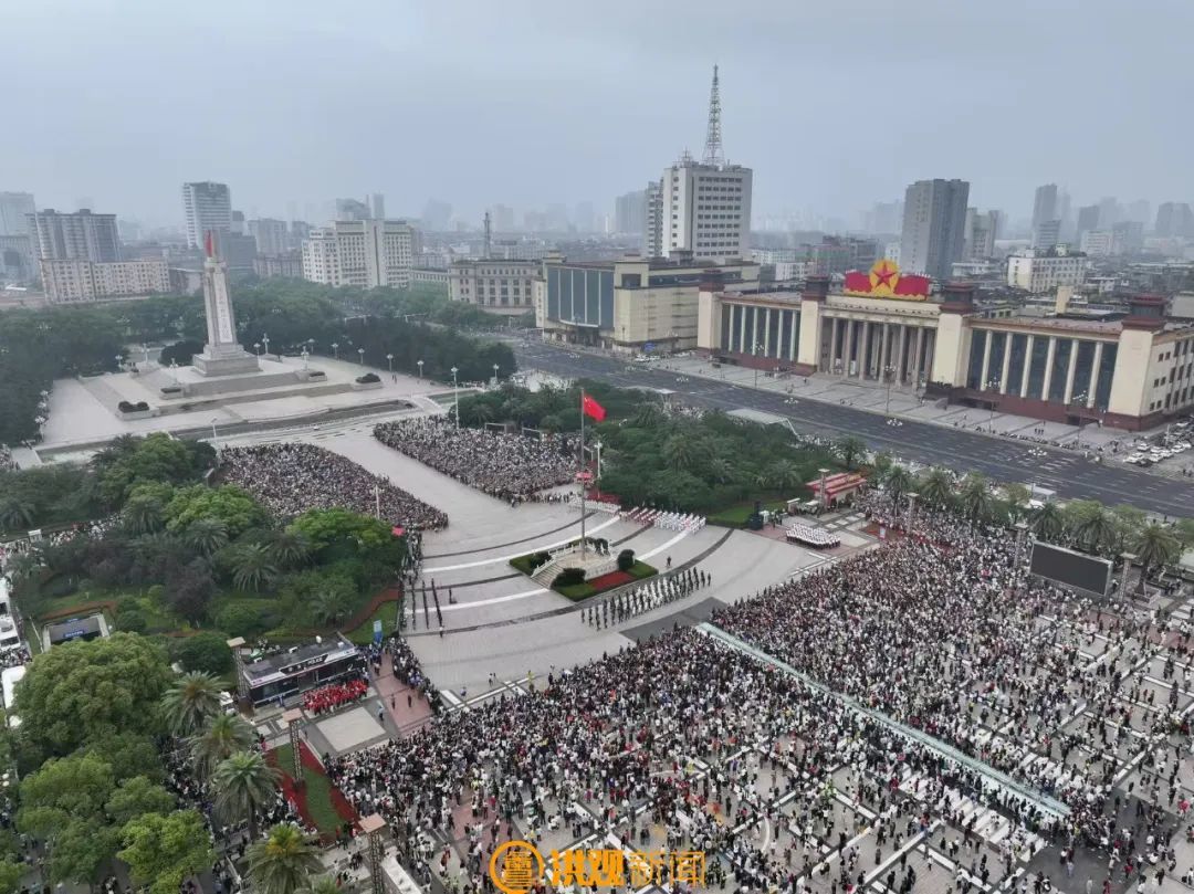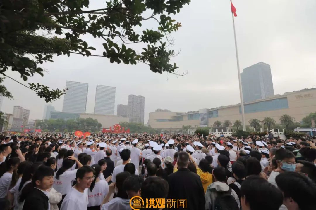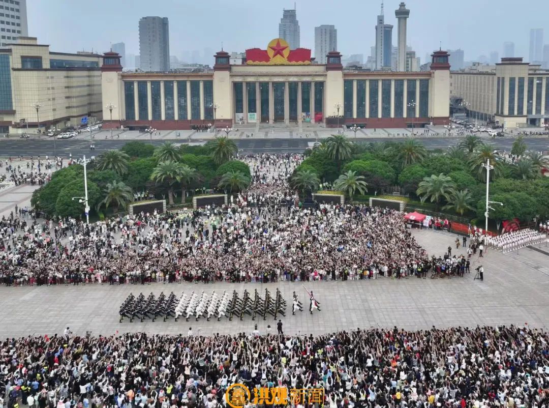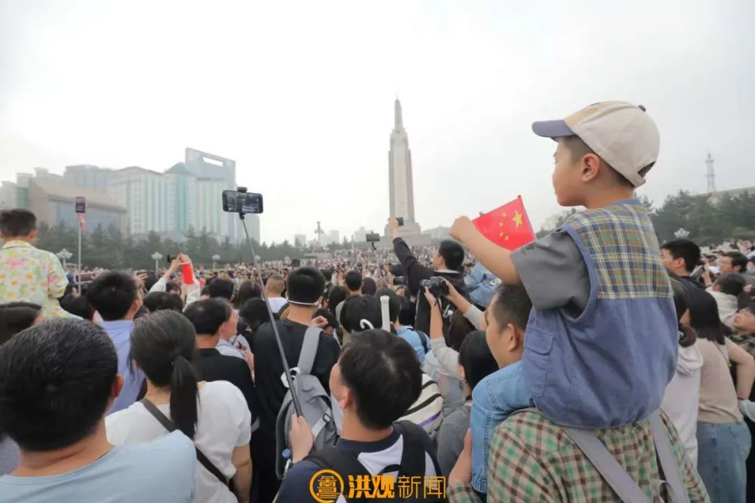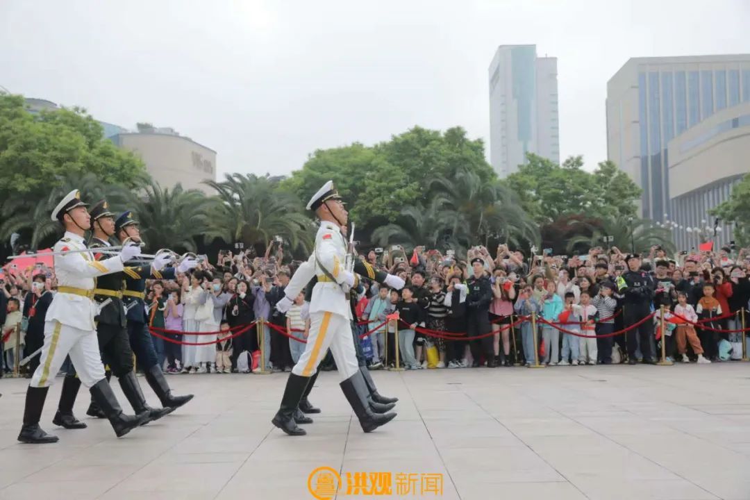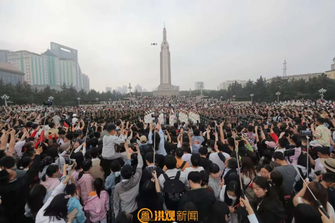 在激昂的歌声中, 五星红旗 升至旗杆最高点
