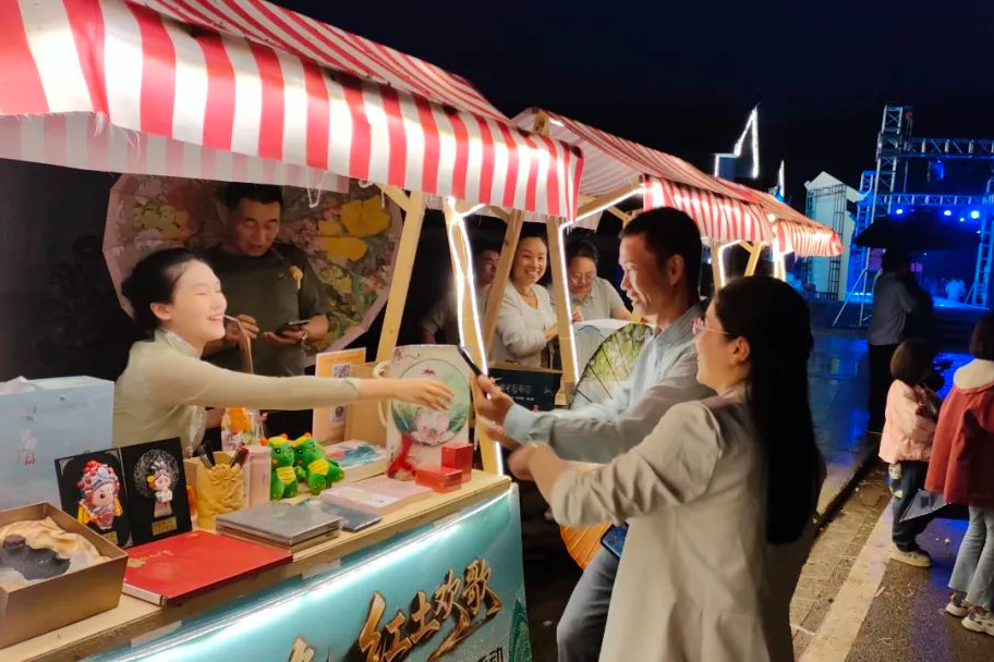 “美食集市”摊位展出了广昌特色农副产品、非遗产品、美食小吃等,村民们在此品尝美食,欣赏精美文创,尽享欢乐“村味”时光。
