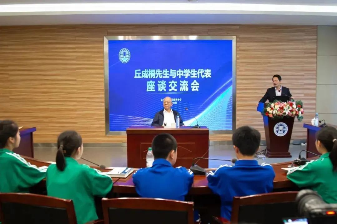互动交流环节,同学们非常积极,就数学前沿方向和天赋影响等话题踊跃提问。丘成桐先生分享了自己少年时学习数学的经历,寄语同学们要重视打好基础,在稳固基础的同时适度探索前沿知识。他指出,做学问的目标是探寻大自然的奥秘,找到有意义的规律,这才是数学家最大的荣誉。对于“天才与努力”的问题,丘先生以数学家黎曼为例,说只要有志趣,天赋和勤奋都能引领大家走向更高远的学术之路。
