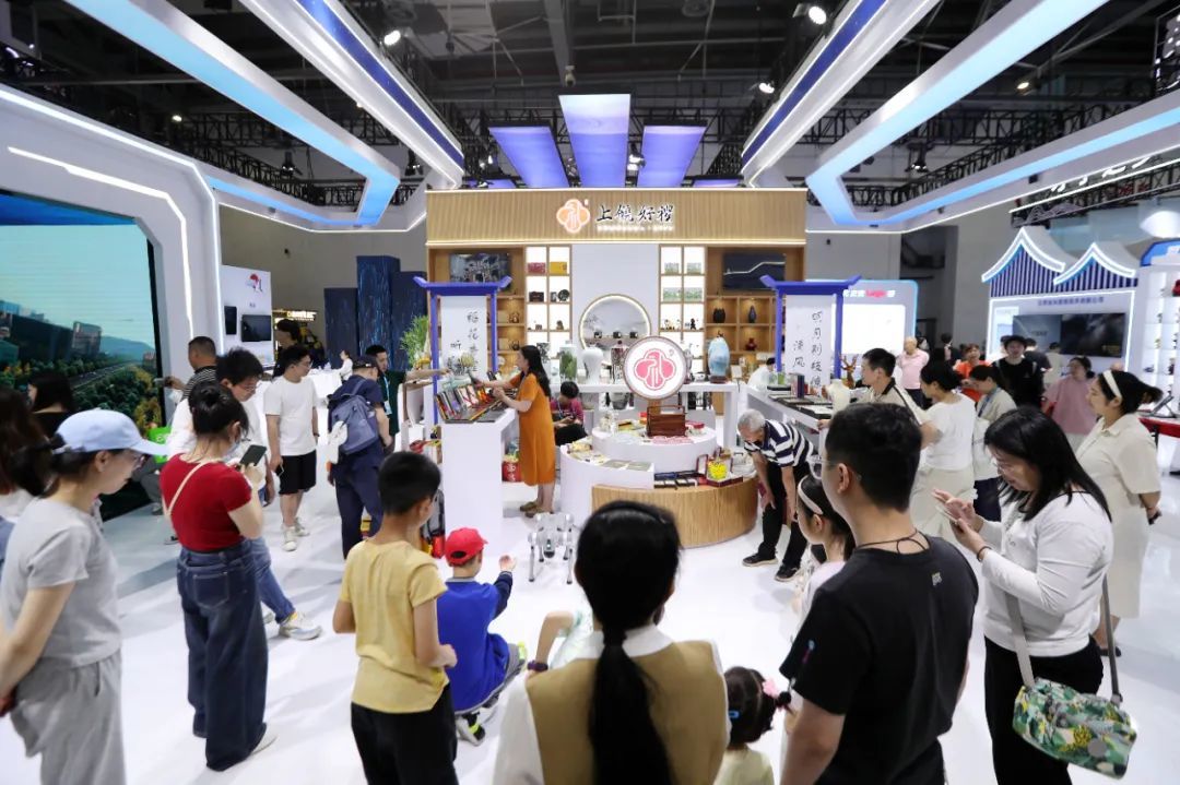 文以载道,博观致远。展会期间,上饶展区通过一系列精彩纷呈的展示活动,如“5G游上饶”虚拟体验空间、文创产品展示、非遗体验互动等,让游客亲身体验到了大美上饶的独特魅力。