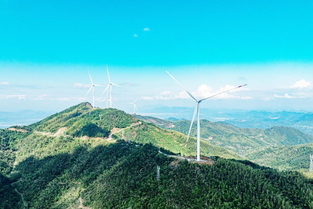近日,袁州区洪塘镇丰顶山,一台台风力发电机矗立于山巅,不断输送着绿色清洁能源。