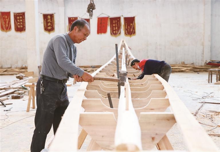 5月14日,万年县梓埠镇柴埠李家村龙舟制作基地呈现一派繁忙景象,每条生产线上都有工人正在赶工制作龙舟。据了解,梓埠镇每年售出龙舟2000余艘,产值超4000万元。现有龙舟作坊、厂家百余家,带动就业400余人,龙舟除销往周边县市,还远销安徽、湖南、广东等地。记者 戴越 蒋学华 摄影报道