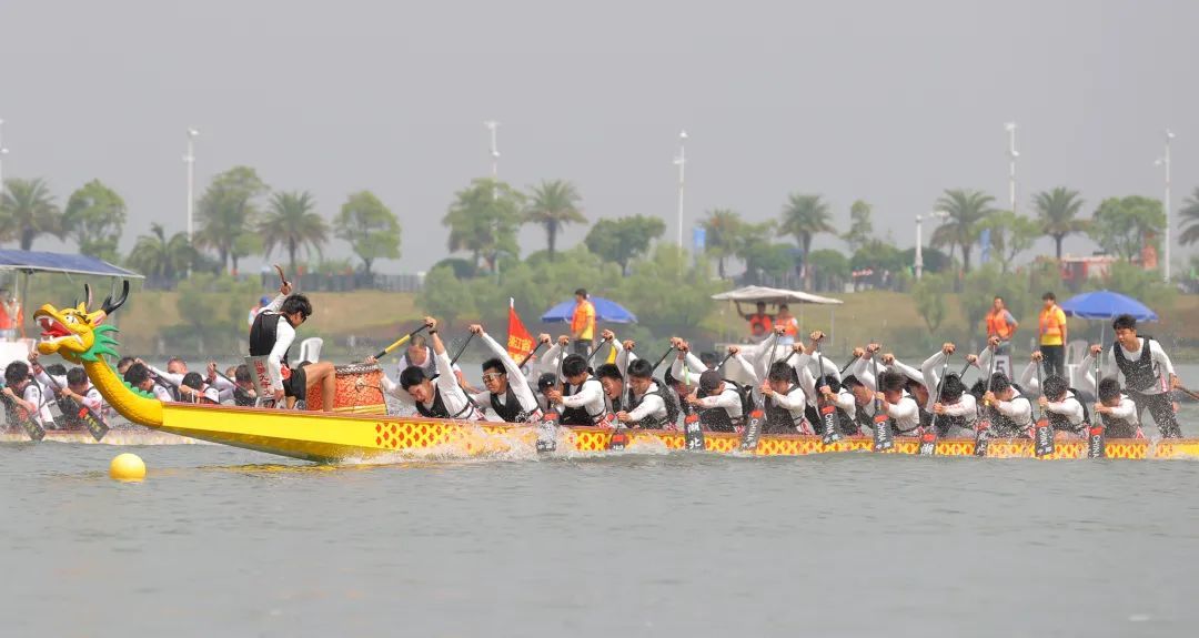 此次大赛由中国龙舟协会指导,江西省体育局、九江市人民政府主办,江西省龙舟协会、九江市体育局、市商务局、市文广旅局、八里湖新区管委会、九江市文化旅游发展集团有限公司联合承办。为期两天的赛事设有公开组(22人龙舟)和地方组(12人龙舟)两个组别,分别进行200米和500米直道竞速比赛。明日(5月18日)上午,将进行500米直道赛。