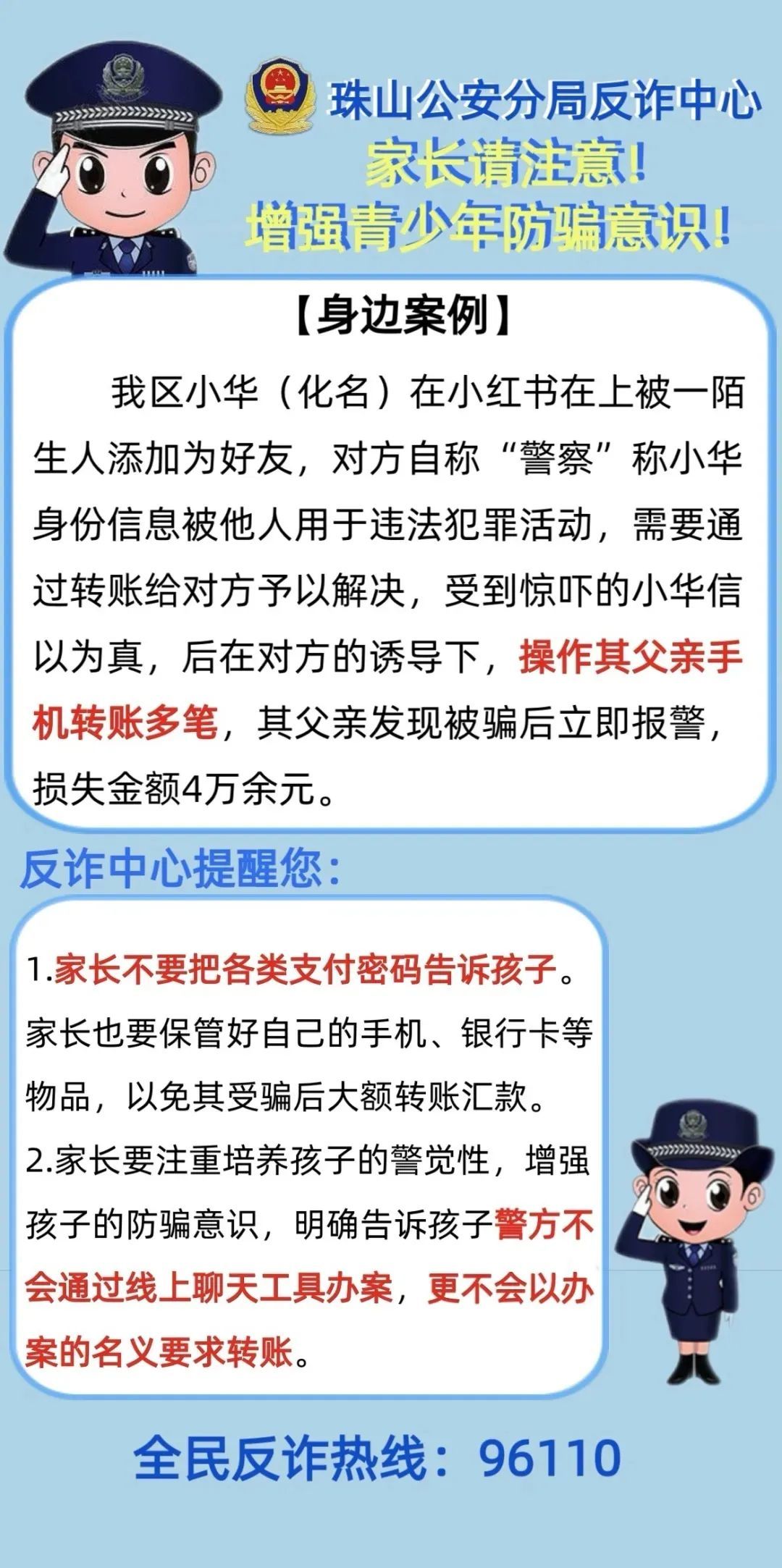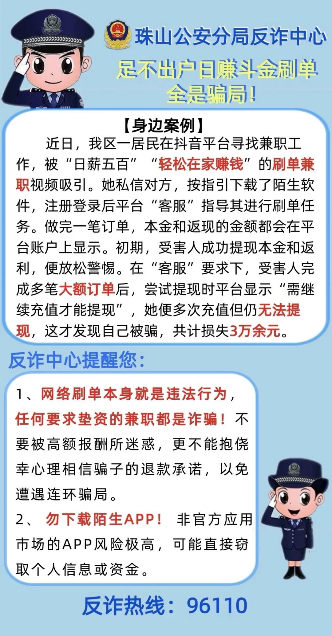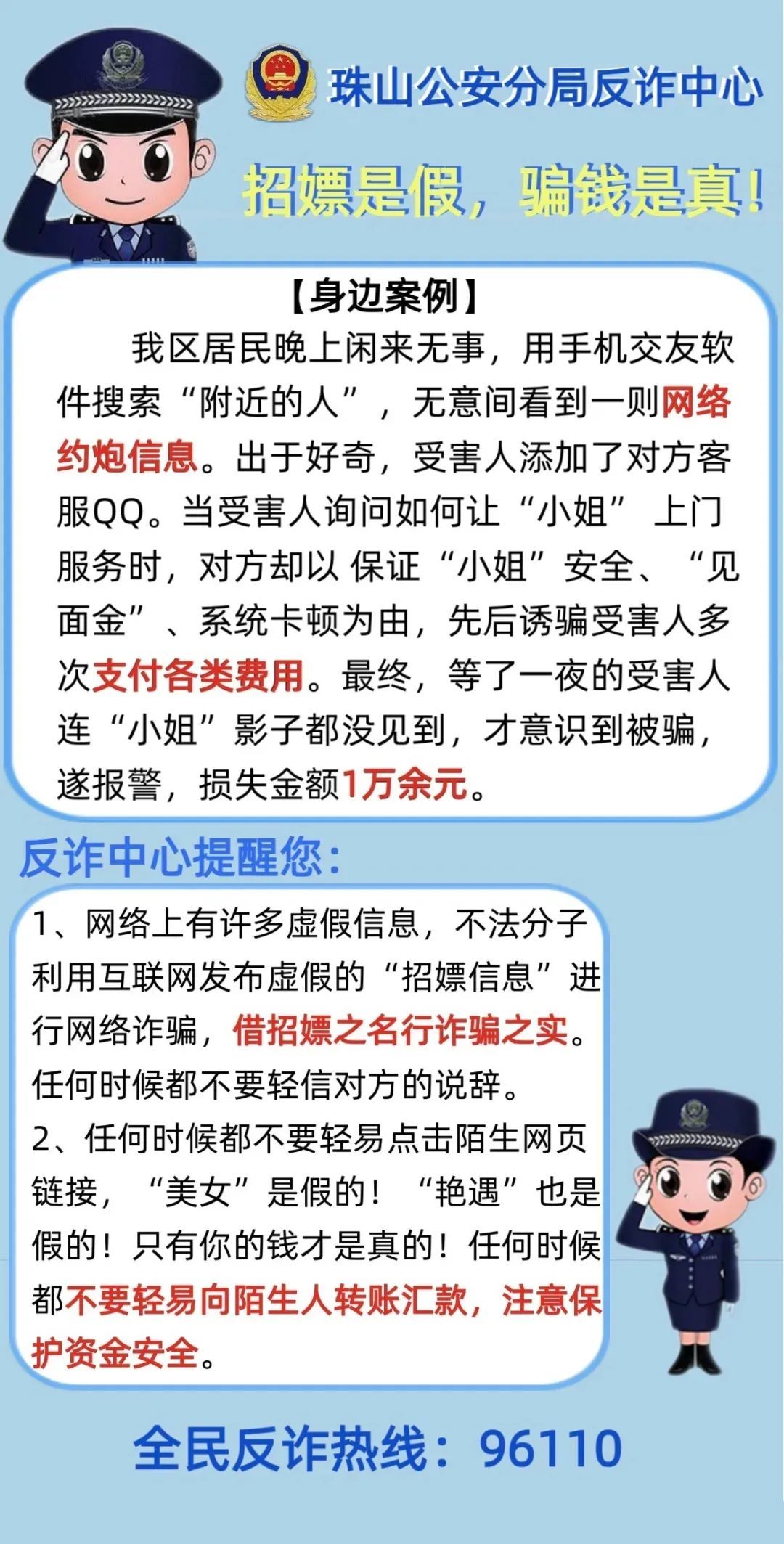 珠山公安分局反诈中心公布了一批骗局案例