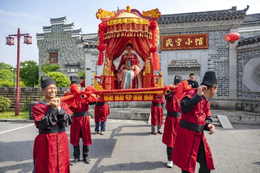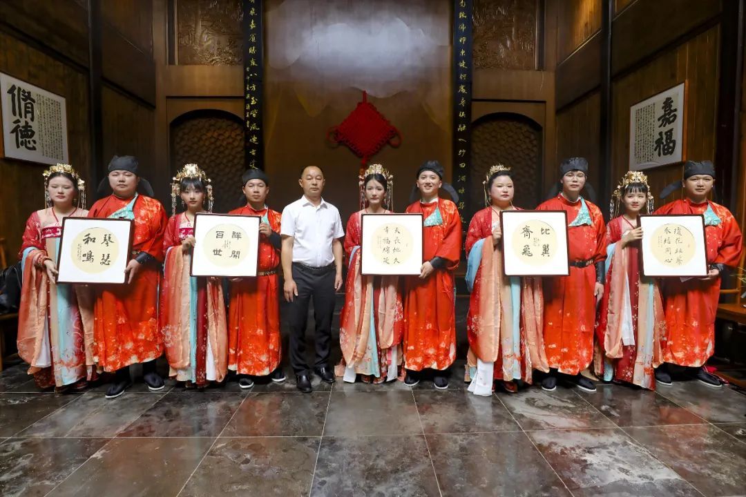 本次活动把现代文明理念创新融入唐式传统婚俗中,新人代表乘坐花轿从廊桥出发,沿西海湾景区进行巡游,唐装华服与山水相映成趣,完整呈现“六礼”迎亲仪式。随后来到长水红豆杉广场主会场,唐式鼓舞奏响“鸾凤和鸣”的乐章,10对新人身着唐制婚服,在千年红豆杉见证下完成拜天地、合髻、合卺、执手礼等传统仪式。活动既隆重热烈又古典简朴,传递了婚事新办、婚事简办的文明新风尚。
