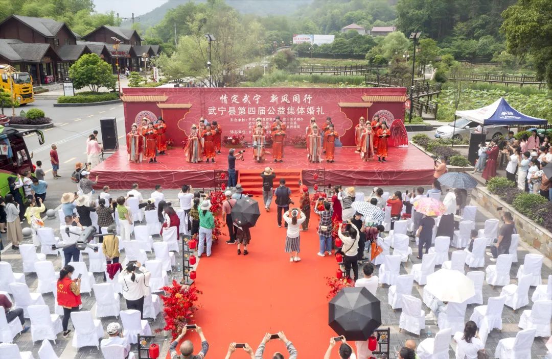 5月19日,由武宁县委宣传部、县文明办、县总工会、县民政局、县妇联、团县委、罗坪镇政府等单位联合主办的“情定武宁 新风同行”户外集体婚礼活动在罗坪镇长水景区举行。县政府党组成员、三级调研员杨桦热情致辞,并宣布婚礼仪式开始。