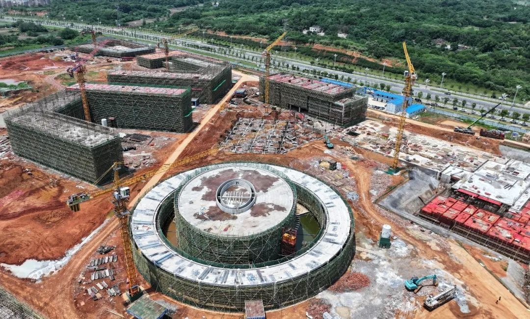 5月21日,在江西九江科技中等专业学校新校区项目建设现场,塔吊林立、机械轰鸣,一栋栋建筑拔地而起。