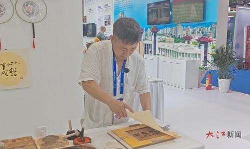 本届文博会,邹氏兄弟不仅带来了以“八大山人”画作等珍品为蓝本创作的翻墨拓印作品,还加入“体验打卡”环节,备下祝福语、生肖瓦当等元素的翻墨体验项目。