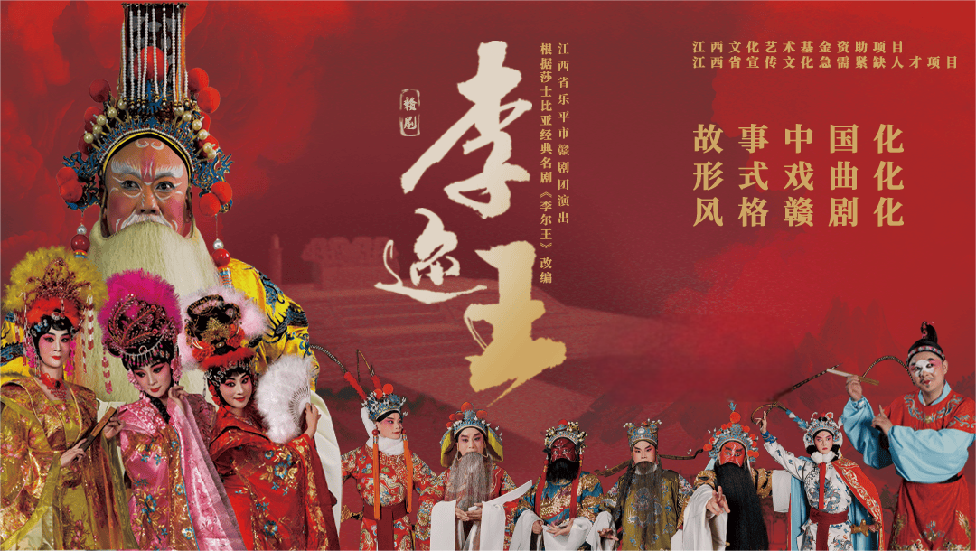 赣剧《李迩王》改编自莎士比亚经典名剧《李尔王》,立足江西深厚的文化底蕴,通过“故事中国化、形式戏曲化、风格赣剧化”的艺术表现手法,将西方经典进行“以中化西”的创新改编。既延续了原剧对人类尊严、自由、权力与道德等深刻主题的探索,又融入中国观众审美习惯与家庭伦理道德观念,强调善良、诚实、孝道,达到雅俗共赏的艺术效果,与社会主义核心价值观完美呼应,带来思想启迪与艺术享受。