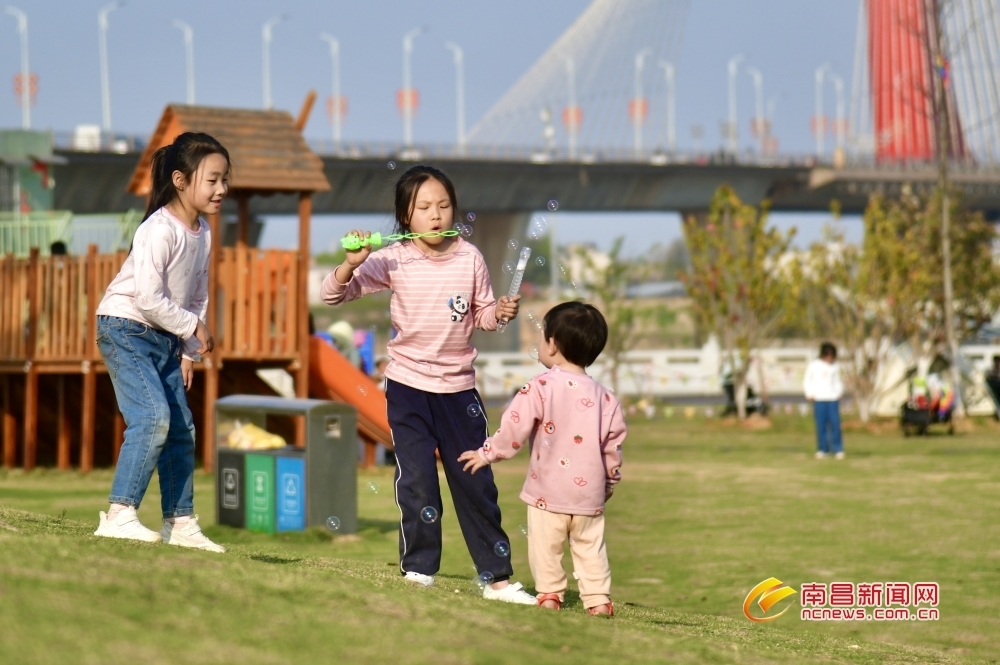 近年来,南昌市坚持生态优先、绿色发展理念,通过水系治理、岸线整治等工程措施,恢复自然生态、自然水系,并布置各类游乐设施器材,打造风景秀丽、功能多样的江滩公园,让群众乐享城市发展带来的生态福祉。图为赣江市民公园。 洪观新闻记者 成奔 摄