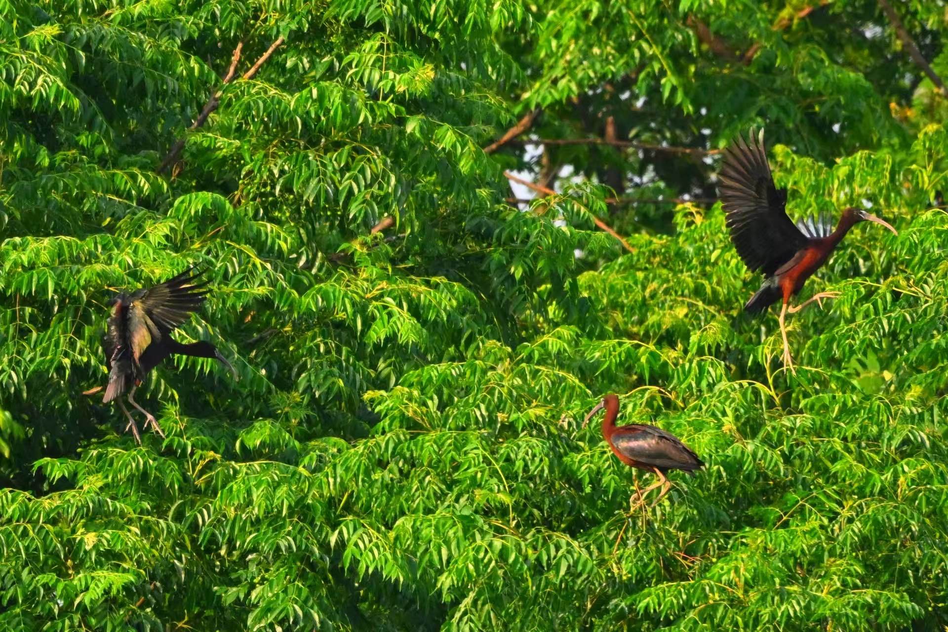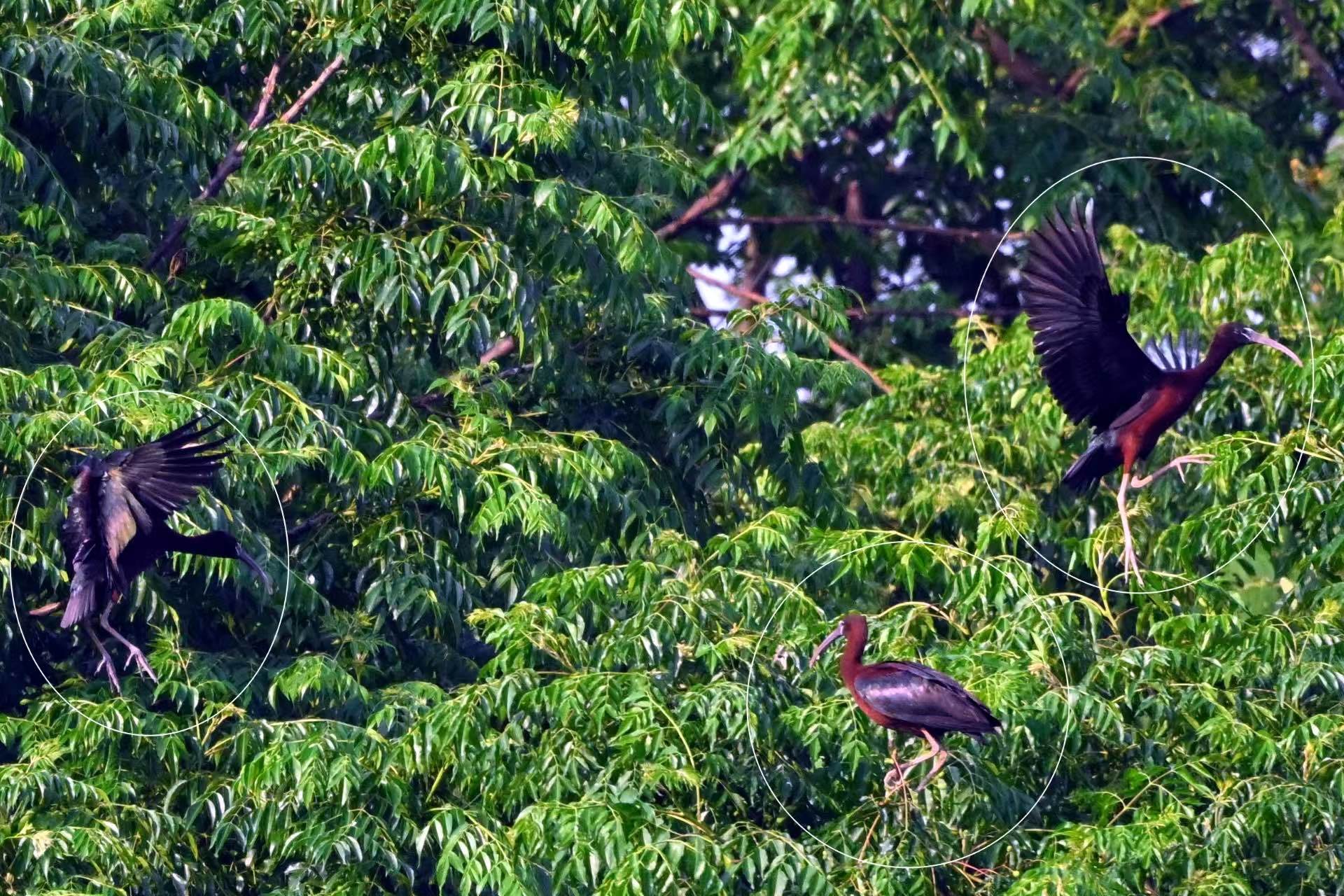 为此,永修县林业局联合江西鄱阳湖国家级自然保护区管理局(以下简称鄱保局)、江西省野生动植物保护协会,全面启动彩鹮的科学监测与保护工作。为减少人为干扰,在彩鹮的栖息地附近,工作人员科学划定了隔离带和无人机禁飞区,限制非必要人为活动,严禁无人机靠近拍摄,并设置了观鸟提示牌与警示牌,全力保障彩鹮的繁殖环境不受干扰。