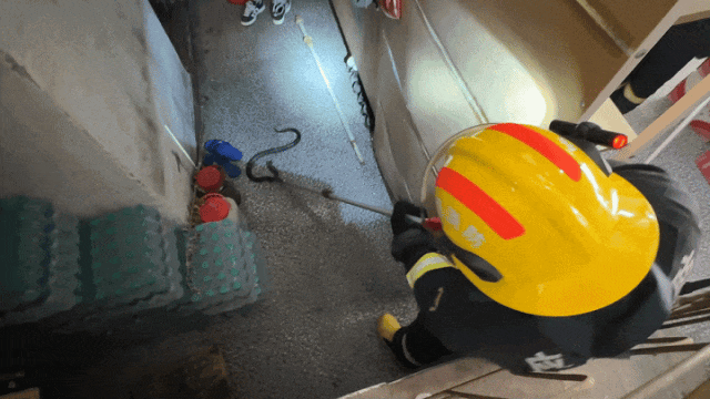 借助捕蛇器将蛇抓获