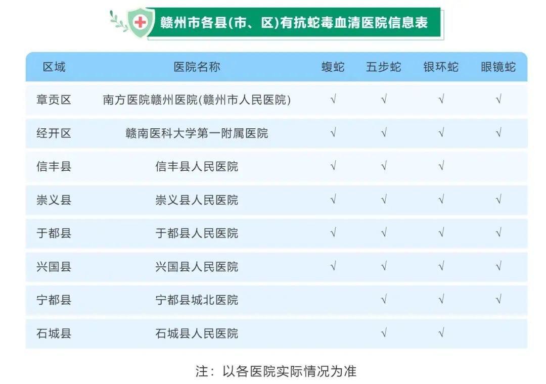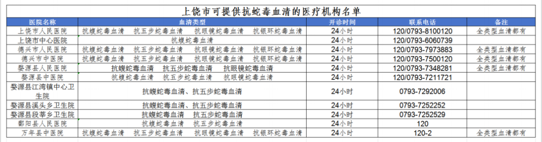 都市现场记者了解到,赣州、上饶、南昌等地已公布有抗蛇毒血清医院信息。