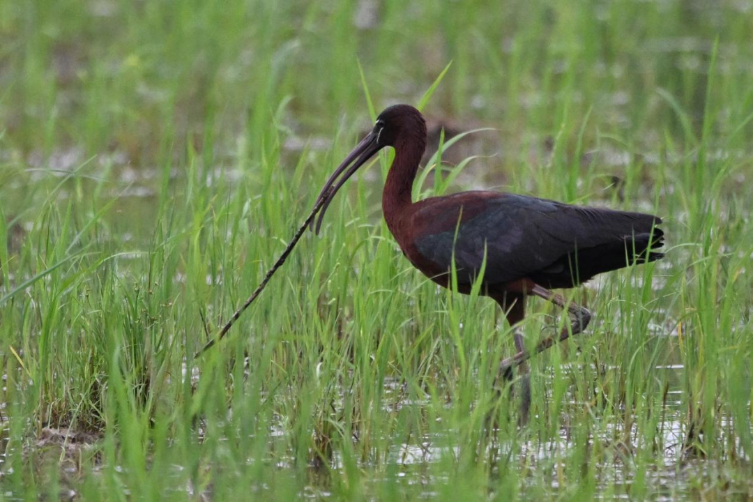 据悉,彩鹮属鹮科鸟类,因其羽毛在阳光下呈现绚丽的金属光泽,被誉为“湿地彩虹”。近年来,随着我国生态修复工程的推进,彩鹮在一些地区零星现身,但其踪迹仍属罕见。作为朱鹮的近亲,彩鹮现存数量比大熊猫更为稀少,被称为“鸟中大熊猫”。