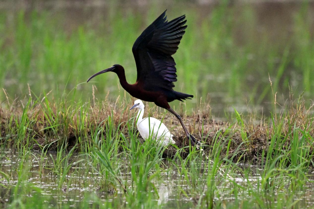 王小龙提醒,观赏和拍摄彩鹮时,应保持安全距离,使用长焦镜头远距观测,保持安静,严禁使用闪光灯、无人机等设备;抵制 “诱拍”“棚拍” 等违规行为,严禁非法捕捉、繁育野生鸟类;在彩鹮繁殖季,禁止靠近、破坏鸟巢或泄露巢址信息;遵守保护区管理规定,不闯入未开放区域,带走垃圾,不破坏湿地生态。
